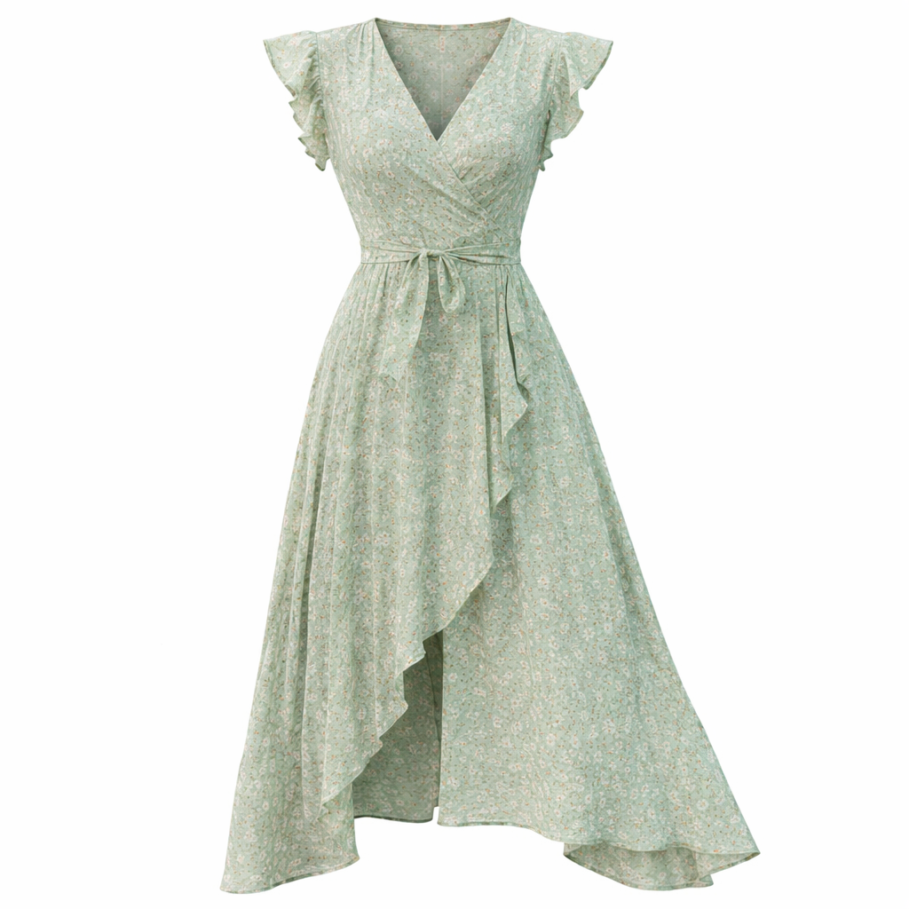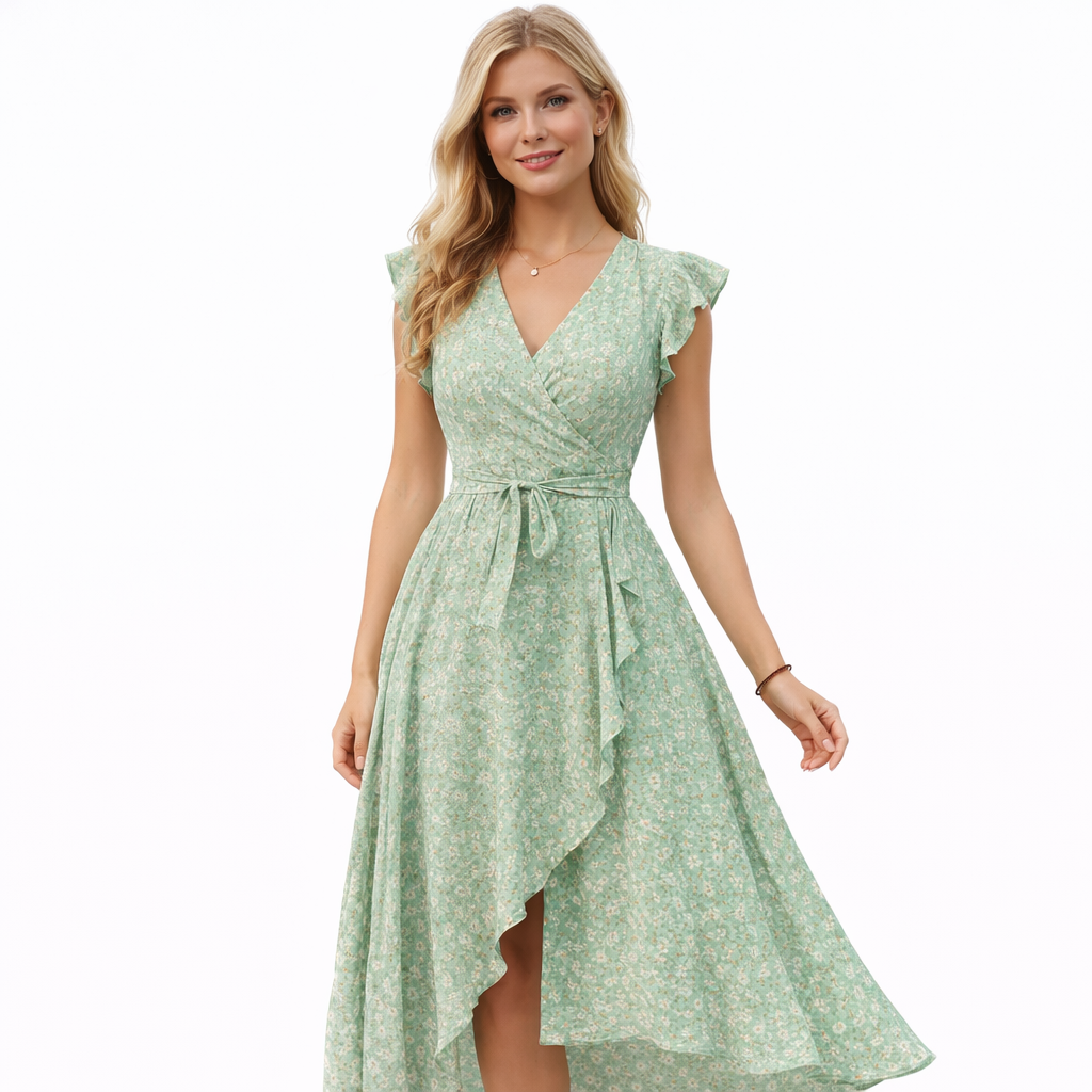 Bohemsk Maxikjole med V-hals – Elegant Kortermet Sommerkjole med Stroppe-detaljer (Ferie & Fest)