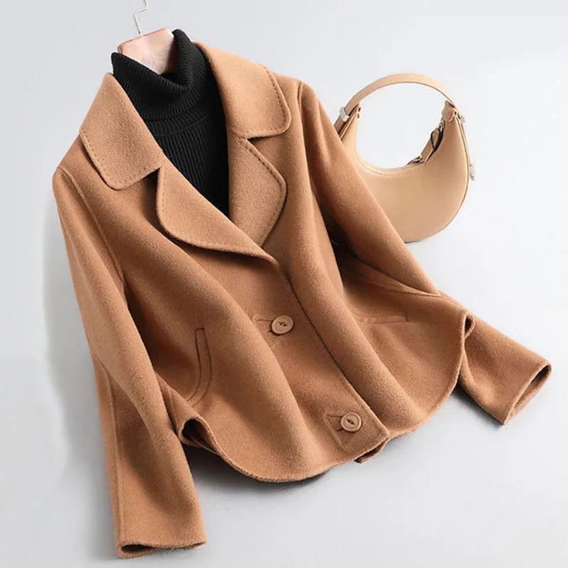 Damejakke i Ull – Kort Kåpe med Krage | Elegant & Tidløs Høst/Vinter