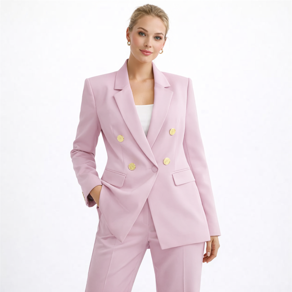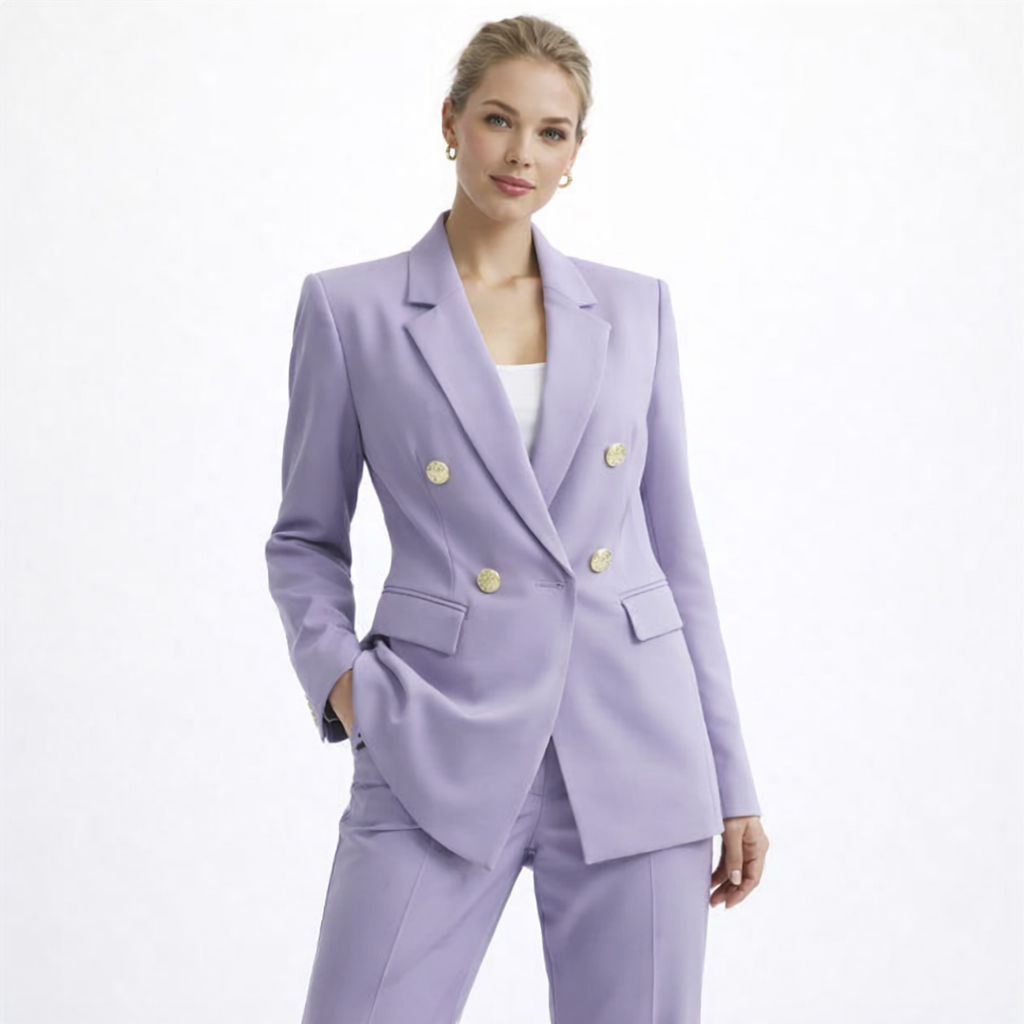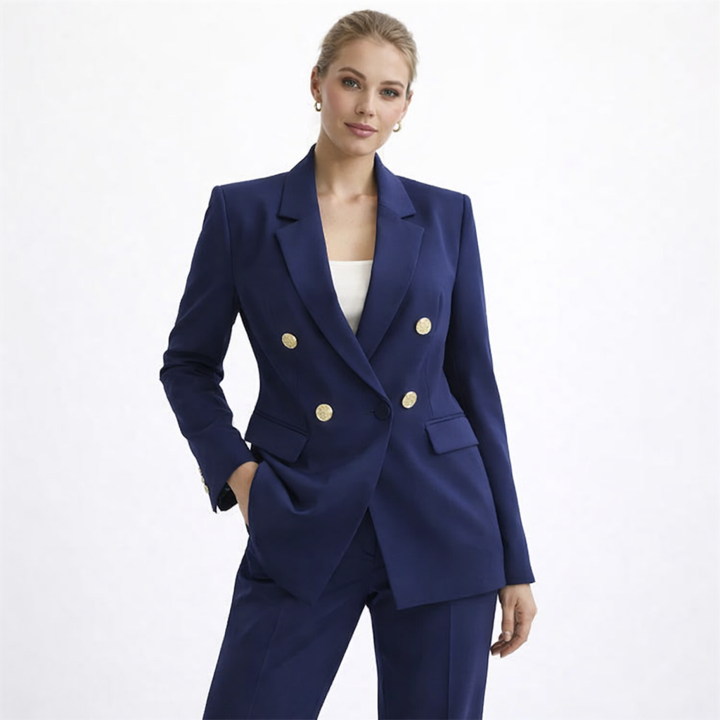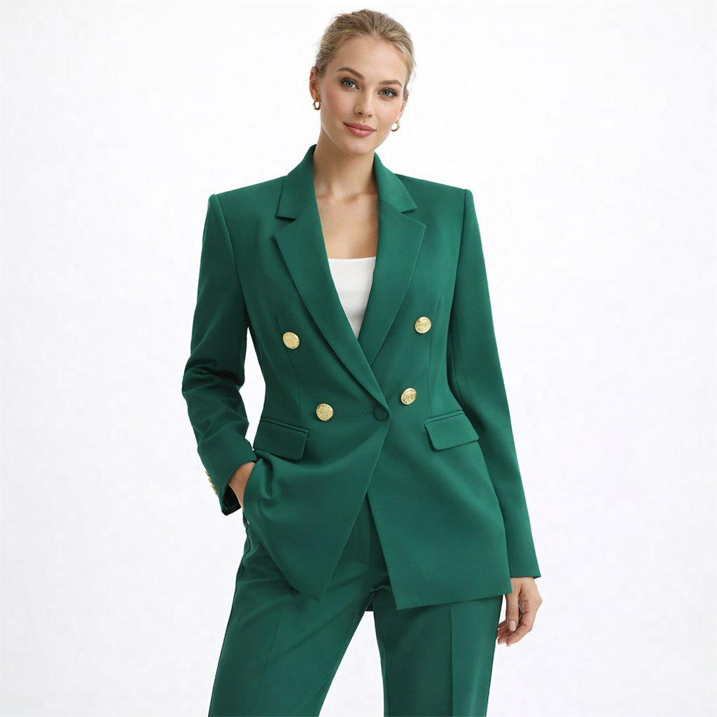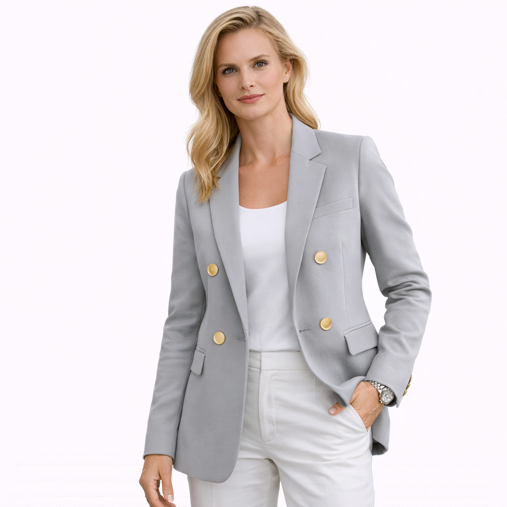 Elegant Dameblazer med Metallspenne – Hvit Dressjakke i Eksklusiv Stil | Klassisk og Moderne Jakke til Vår og Høst (2025)
