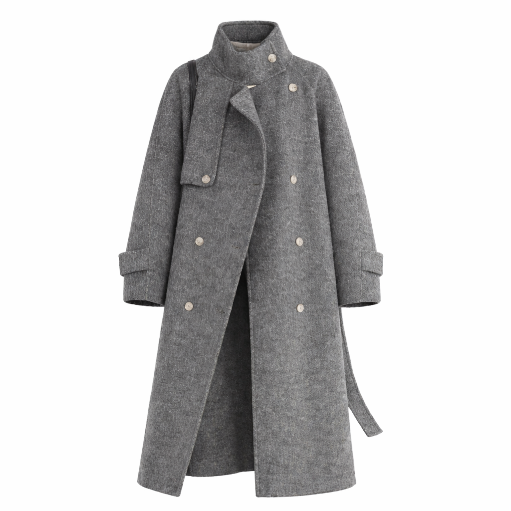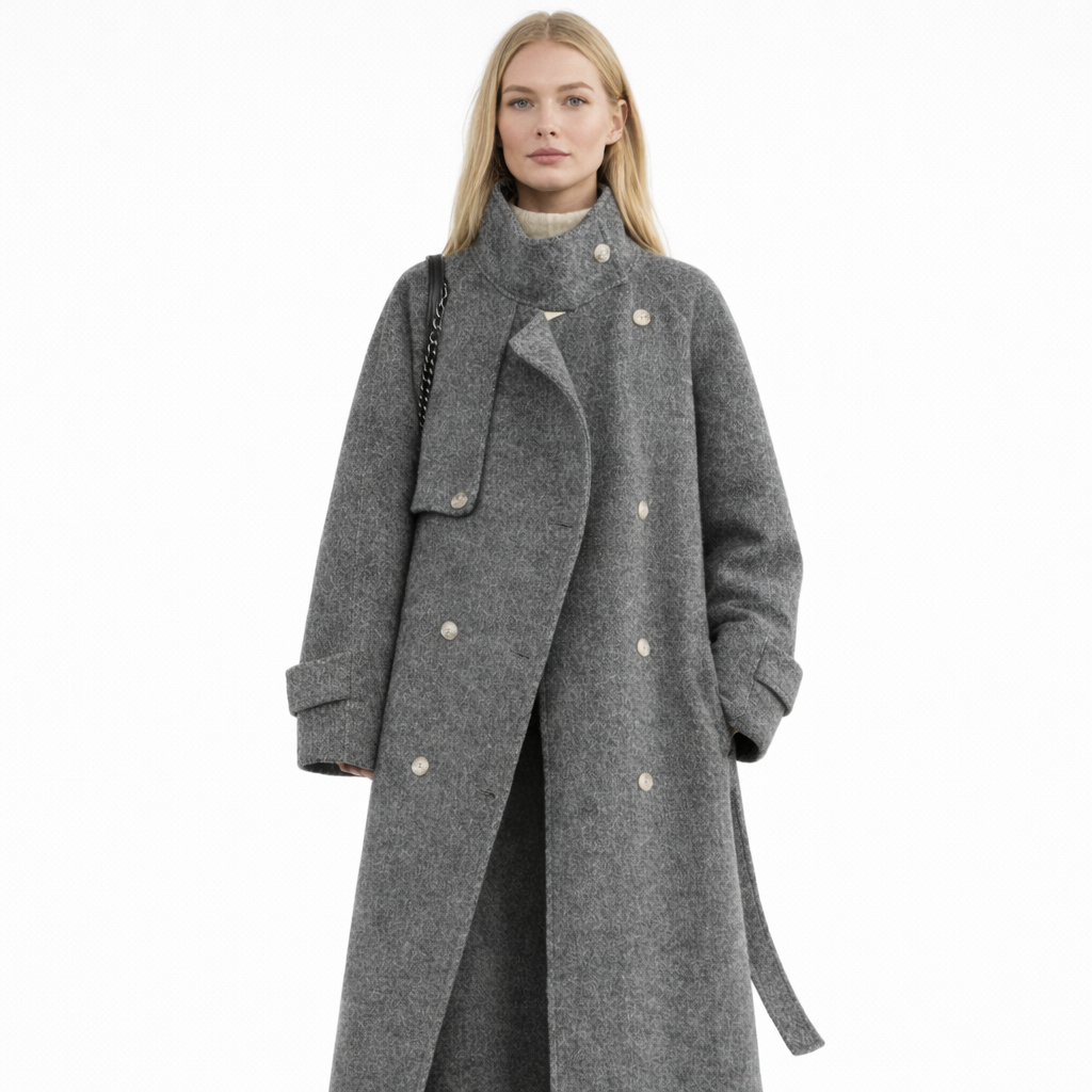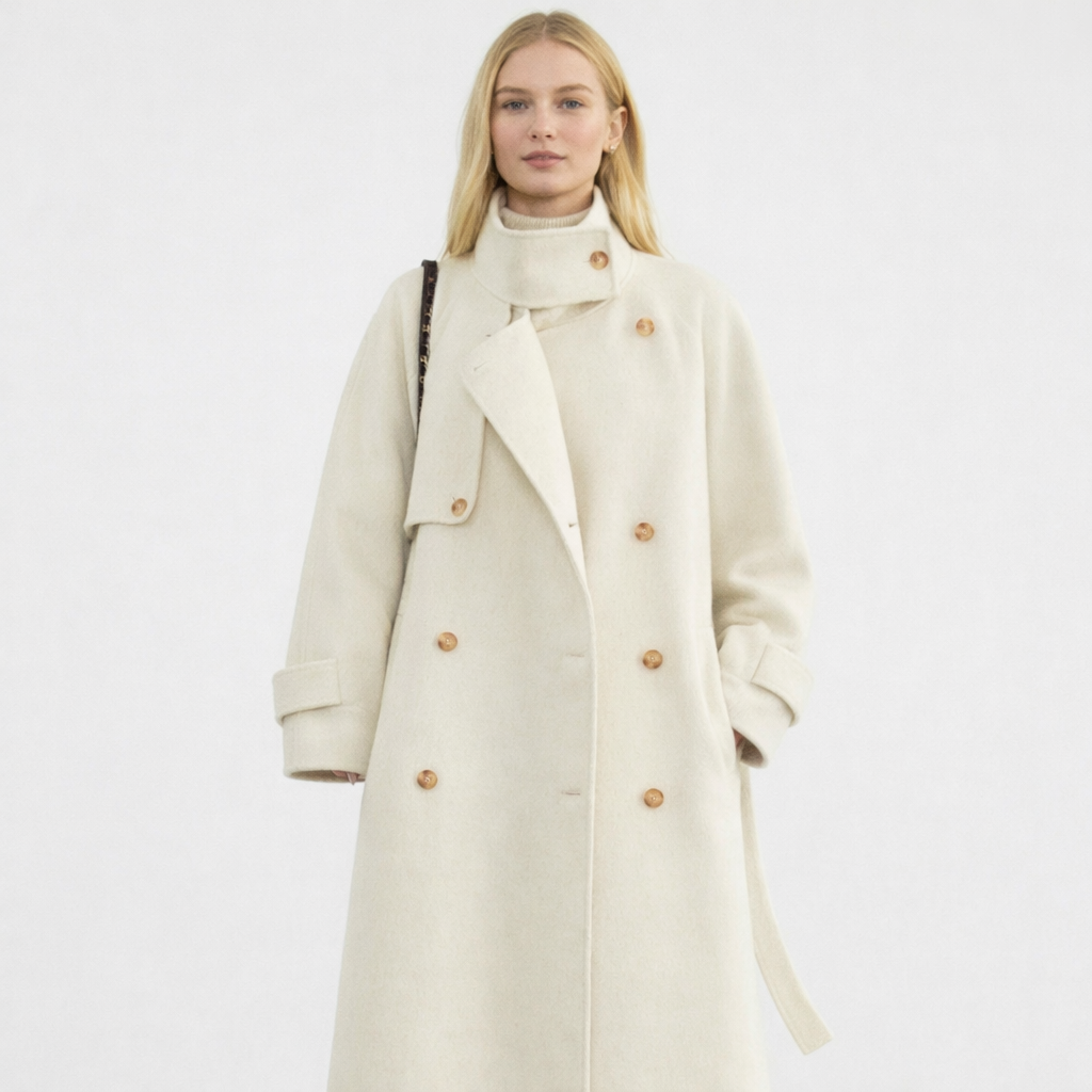 Elegant Ullkåpe for Dame – Dobbelsidig Kåpe med Ståkrage | Løs Passform til Høst og Vinter