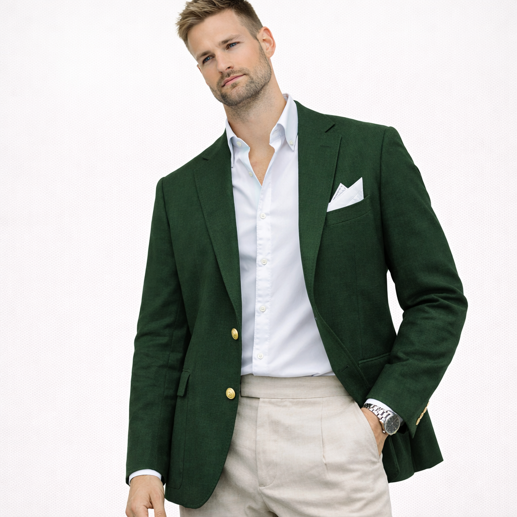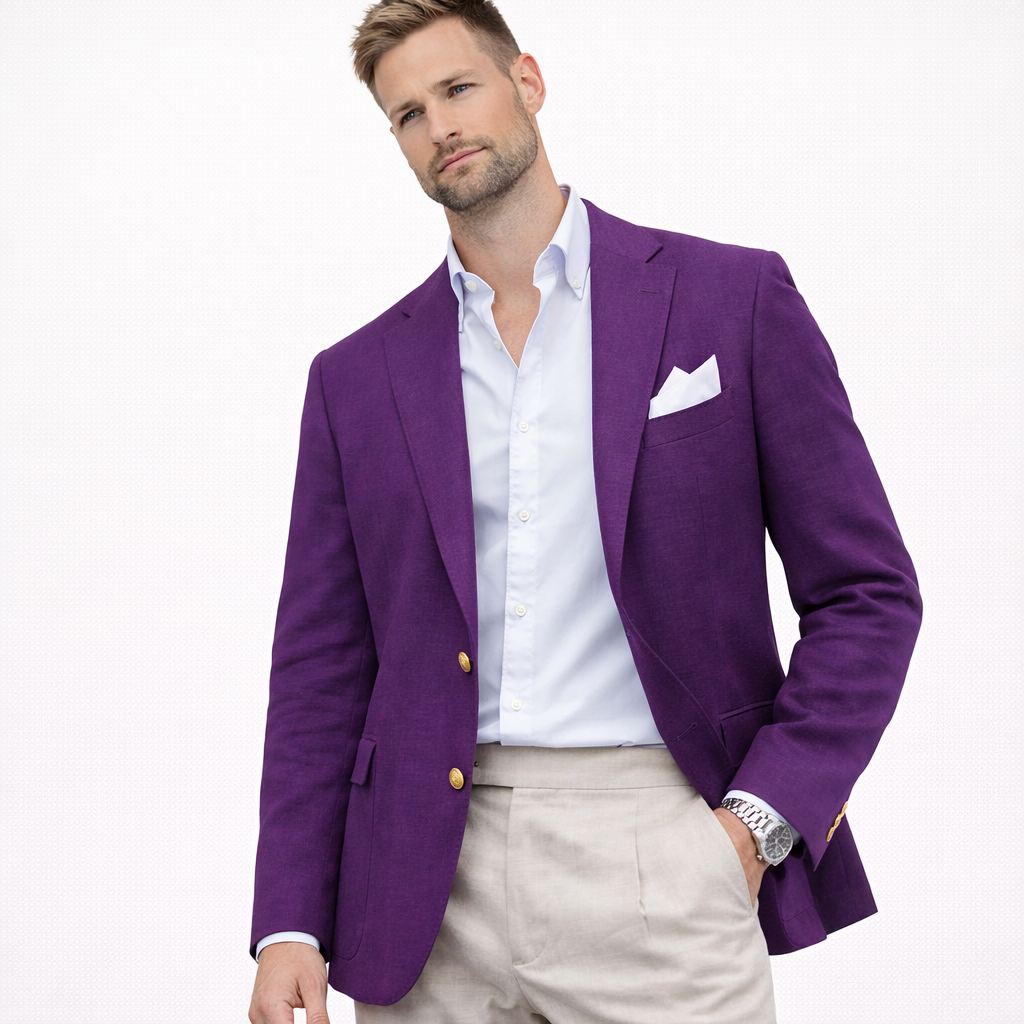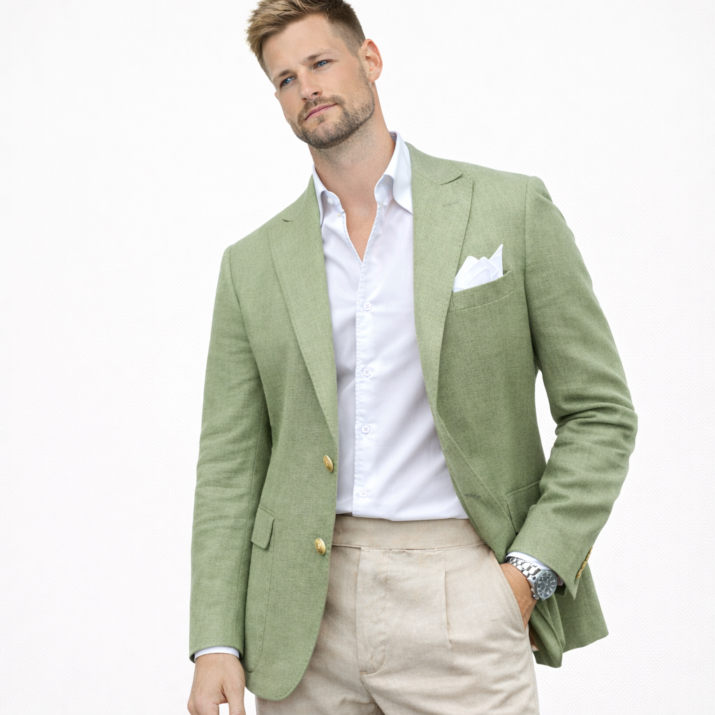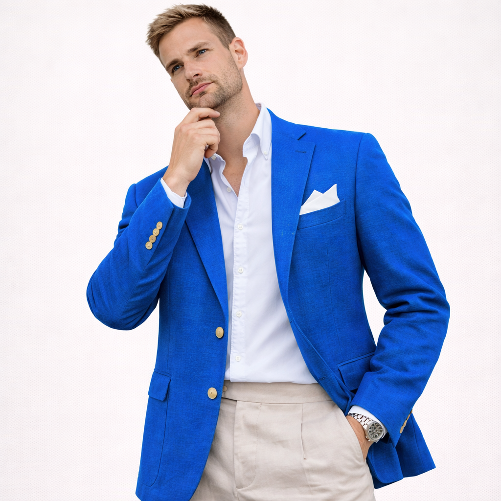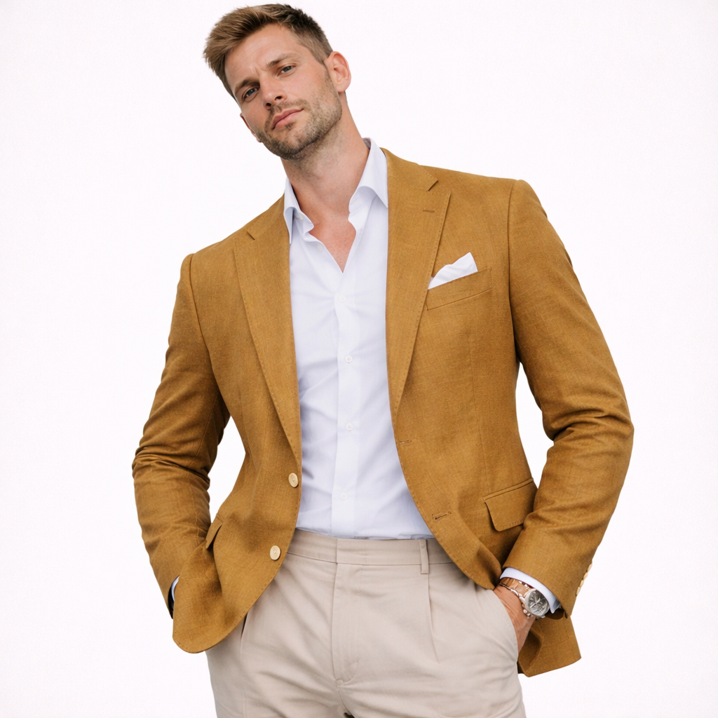 Skal du i bryllup, sommerfest eller ønsker en lett blazer som funker til alt? Denne linblazeren til herre er et stilsikkert valg når du vil se velkledd ut – uten å bli for varm. Lin har en naturlig, luftig følelse som gjør jakken perfekt til vår og sommer, og den passer like bra til en avslappet “wedding guest”-look som til smart casual hverdagsstil.