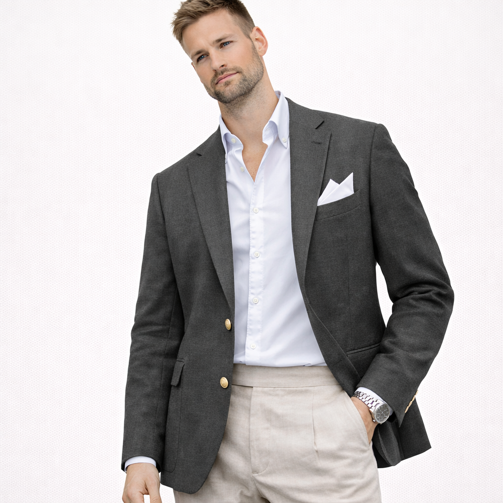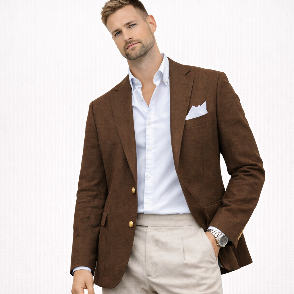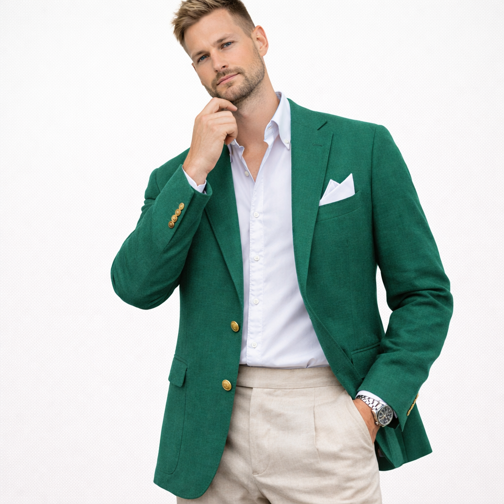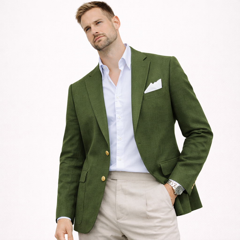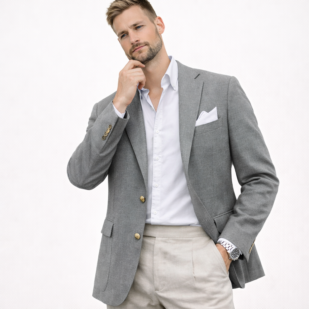 Skal du i bryllup, sommerfest eller ønsker en lett blazer som funker til alt? Denne linblazeren til herre er et stilsikkert valg når du vil se velkledd ut – uten å bli for varm. Lin har en naturlig, luftig følelse som gjør jakken perfekt til vår og sommer, og den passer like bra til en avslappet “wedding guest”-look som til smart casual hverdagsstil.
