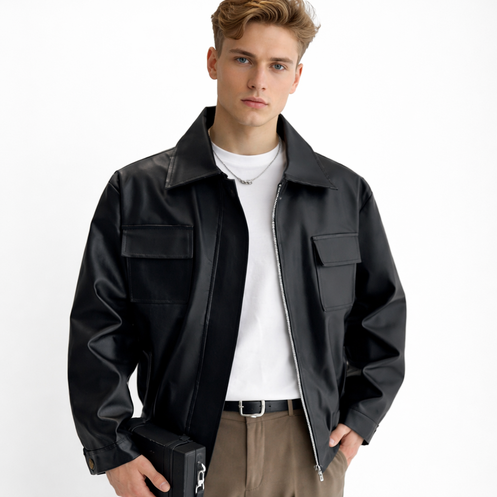 Herrejakke i PU-skinn – Vind- og Vanntett med Glidelås