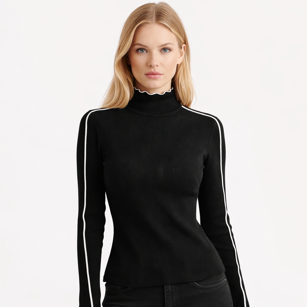 Løft hverdagsstilen din med denne trendy høyhalsete strikkegenseren – en perfekt kombinasjon av komfort, feminint snitt og moderne fargespill. Denne genseren er designet for den motebevisste kvinnen som ønsker et rent, stilfullt uttrykk med et hint av personlighet.