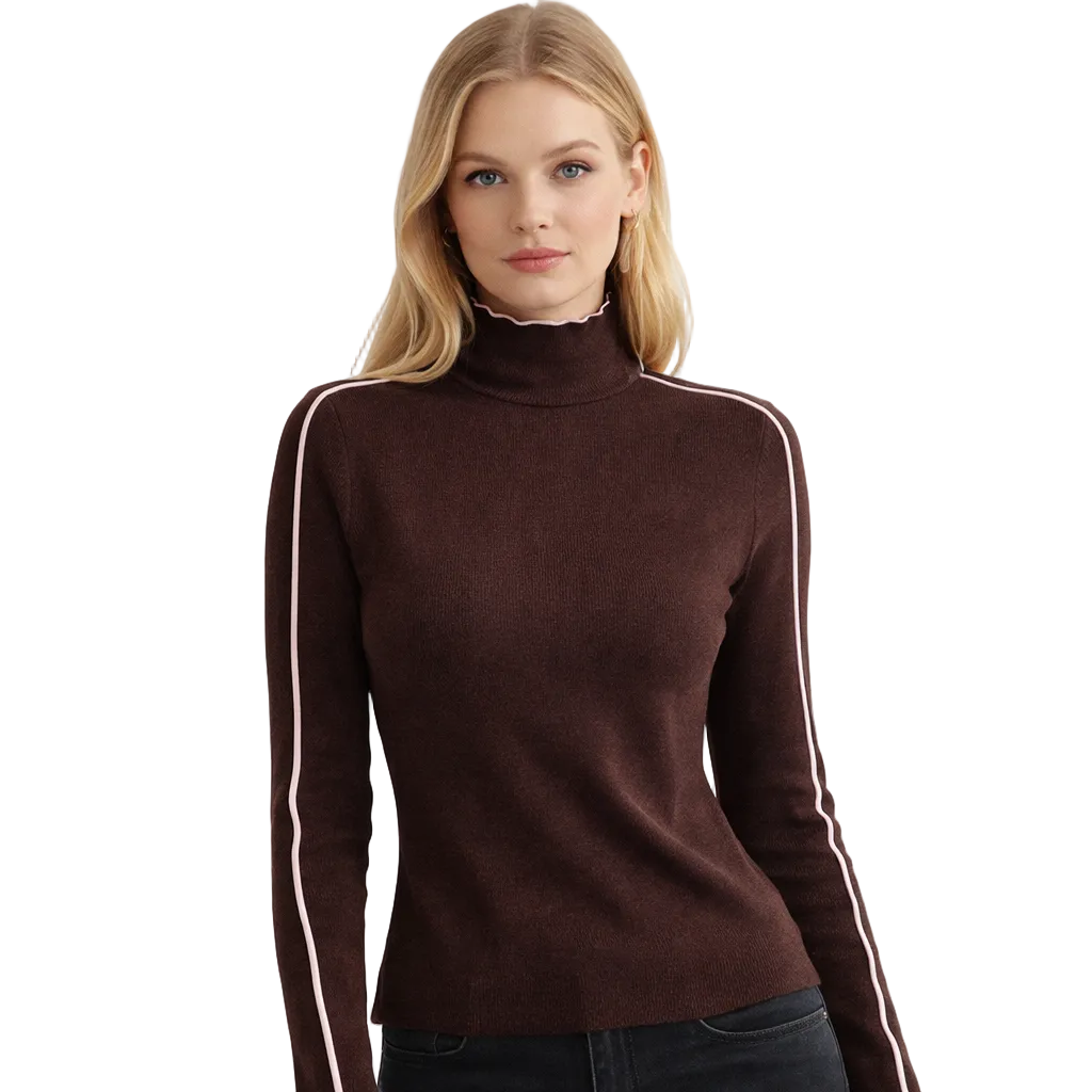 Høyhalset Strikkegenser for Kvinner – Trendy Flerfarget Slim Fit Genser | Elegant og Myk til Høst og Vinter