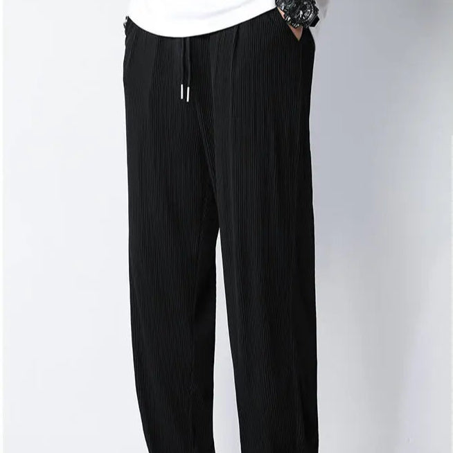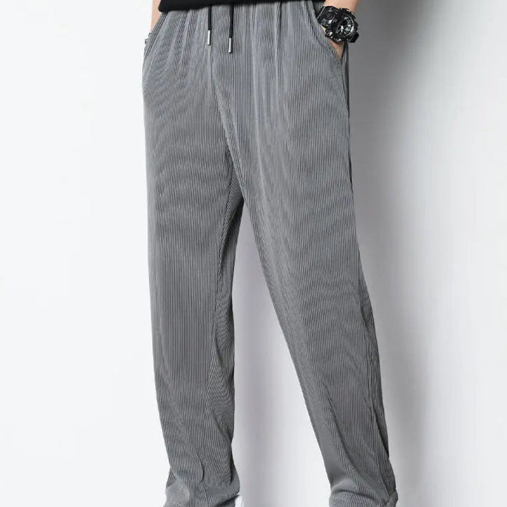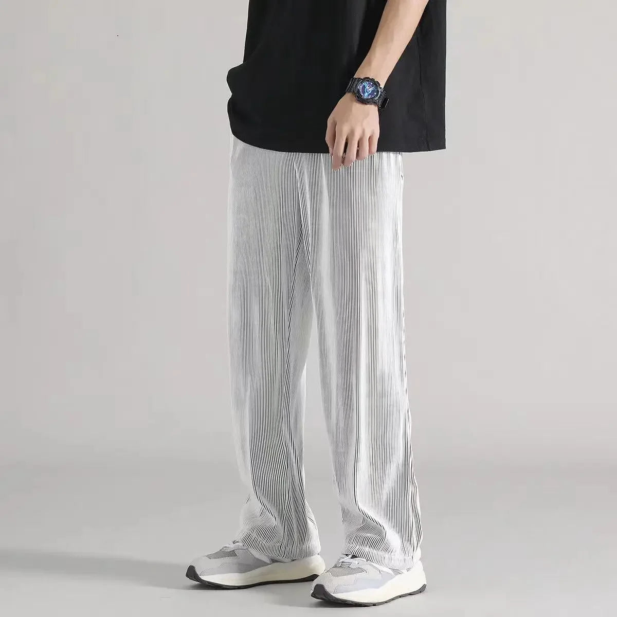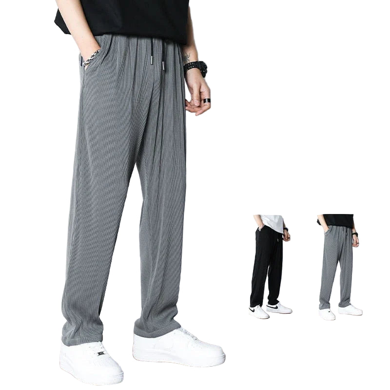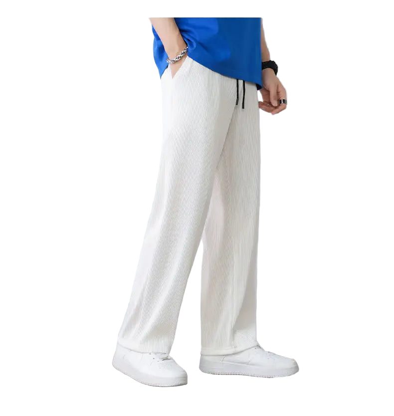Hvite Ice Silk Sommerbukser for Herre – Lette, Vide Streetwear Bukser