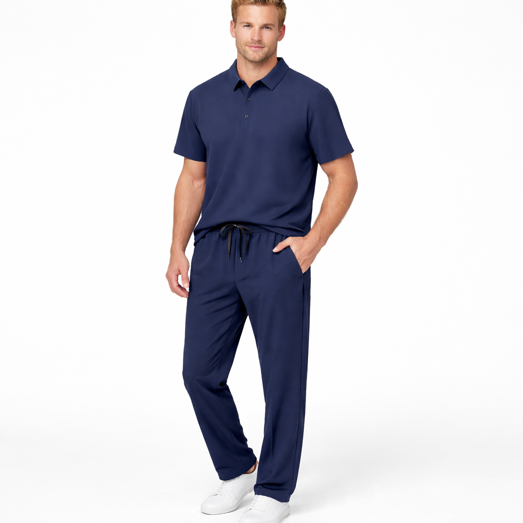 Sommerens Favoritt: Pustende Herresett i Is-silke – Polo & Bukse i Todelt Joggedress