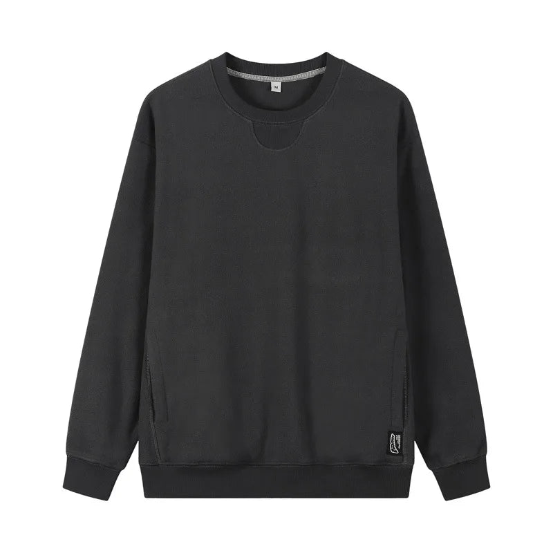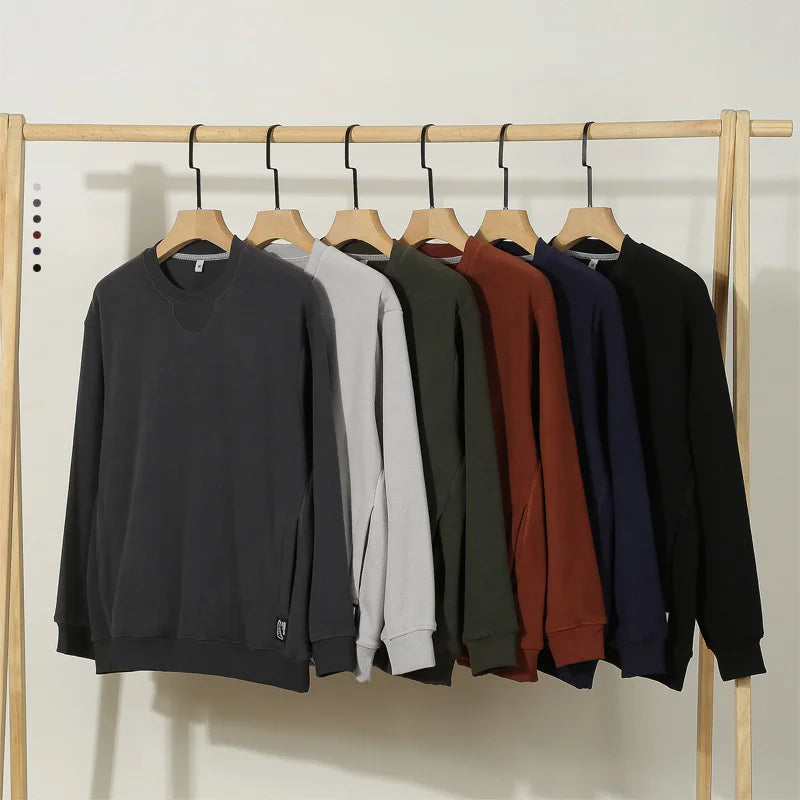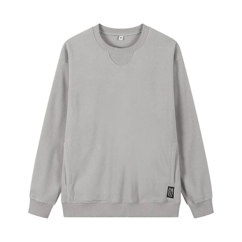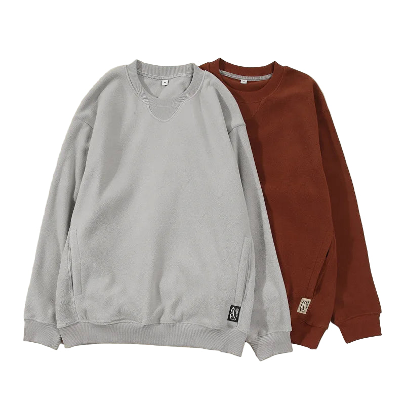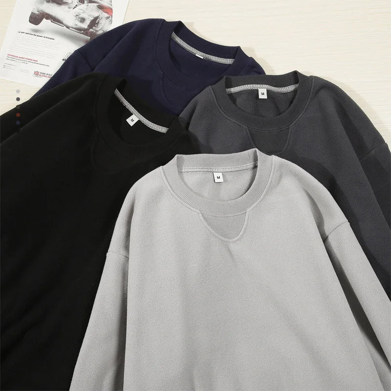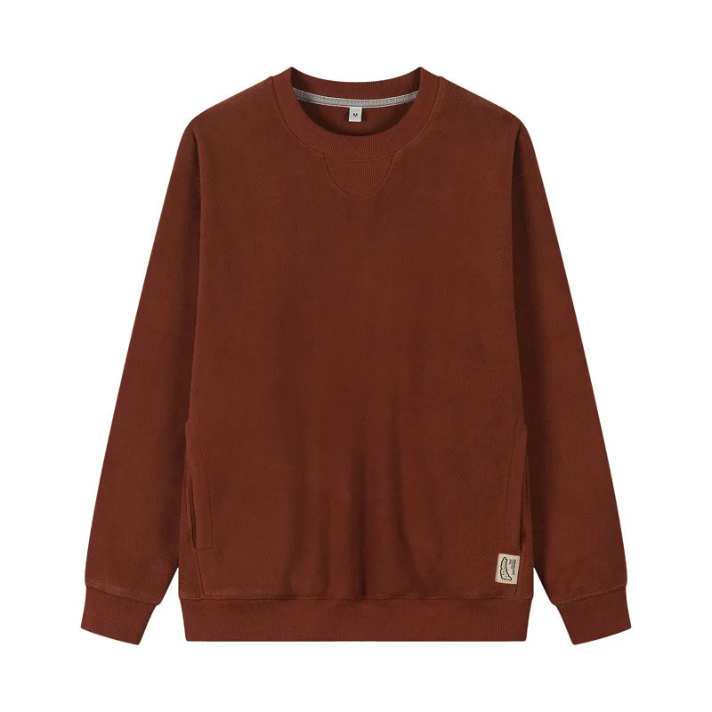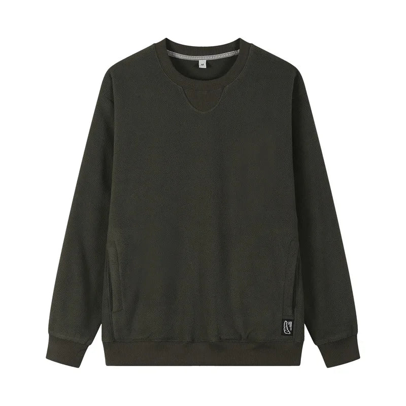 Varm Fleecegenser for Menn – Tykk 300G Langermet Genser med Lomme | Myk, Ensfarget og Komfortabel til Høst og Vinter