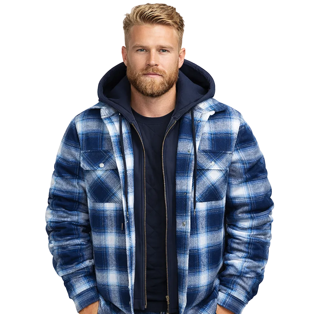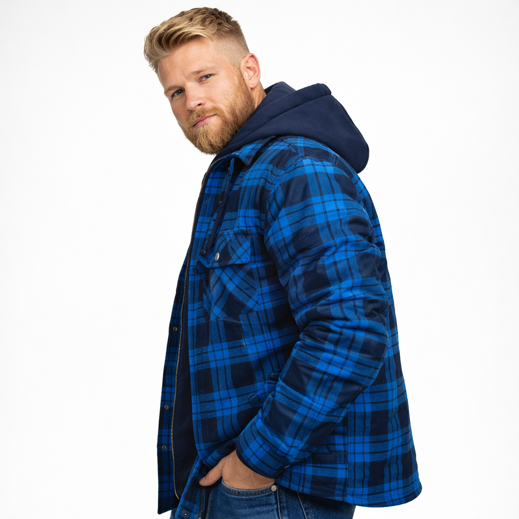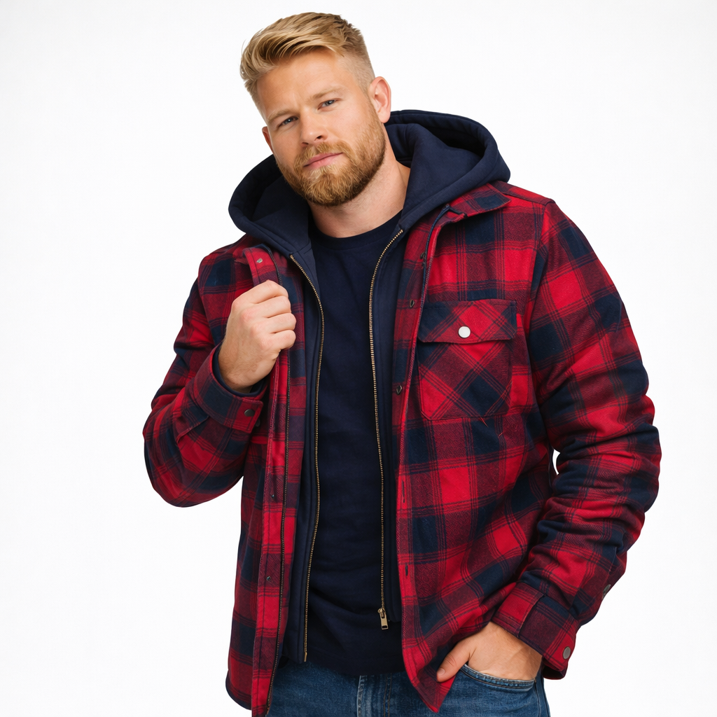 Varm Rutete Skjortejakke for Menn – Tykk Flanell med Quiltet Fôr og Avtakbar Hette | Robust Vinterjakke i Klassisk Stil