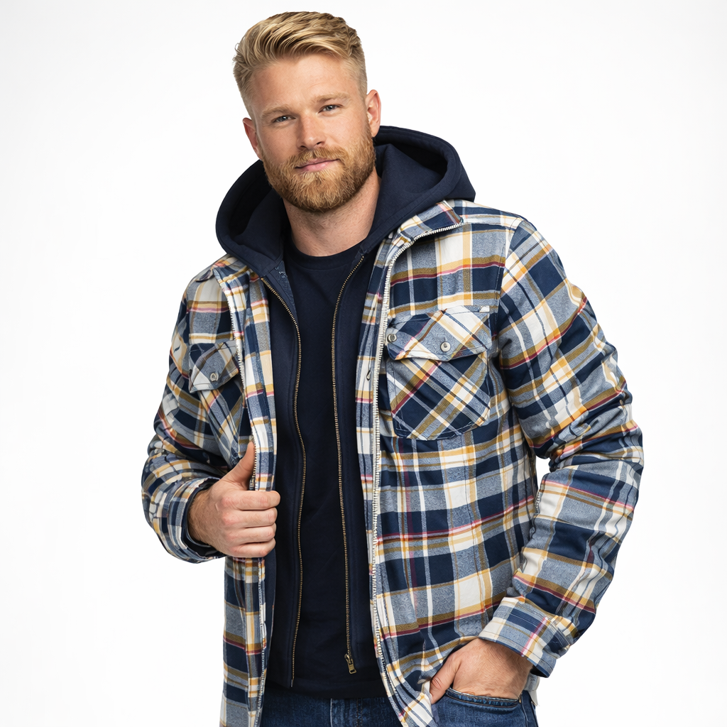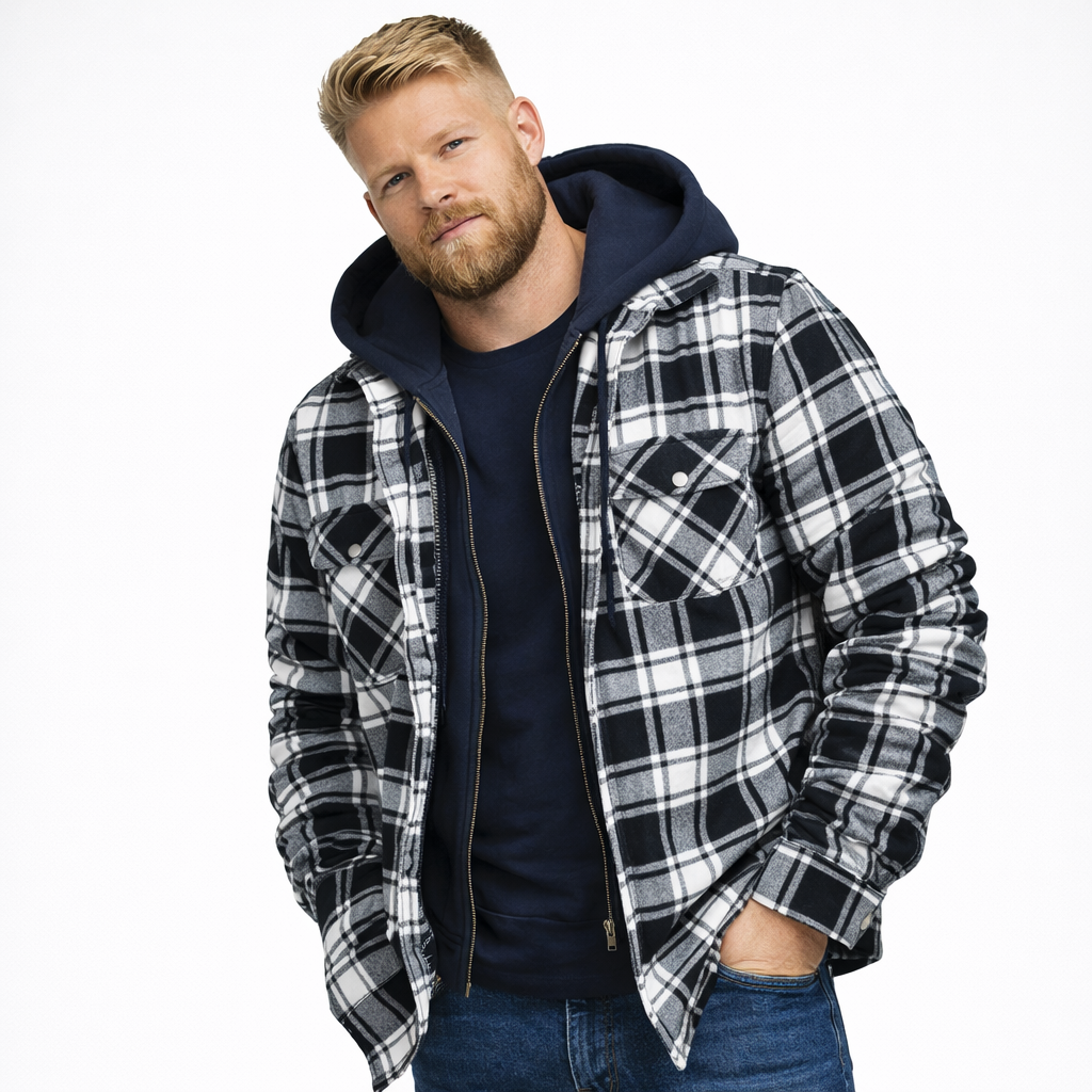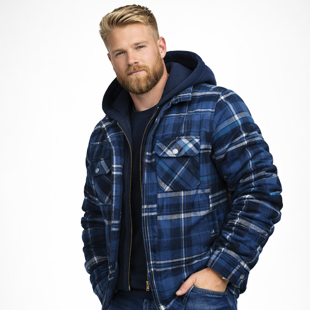 Varm Rutete Skjortejakke for Menn – Tykk Flanell med Quiltet Fôr og Avtakbar Hette | Robust Vinterjakke i Klassisk Stil