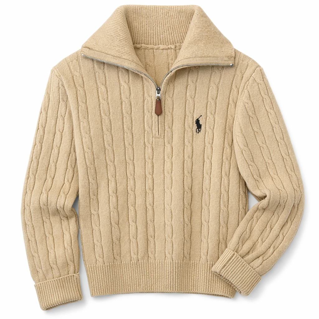 • Krage: Polokrage med halv-zip.