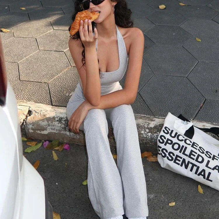 Dame 2-delt Sett – Sporty og Elegant Halter Topp med Vide Bukser