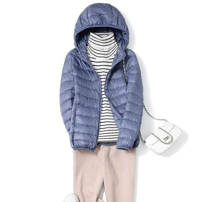 Oppdag den perfekte kombinasjonen av komfort, varme og koreansk-inspirert mote med denne ultralette dunjakken. Med sitt korte snitt, pustende materiale og praktiske hette er dette en jakke du kan bruke hver dag gjennom høst, vinter og vår. Tilgjengelig i hele 15 flotte farger, slik at du kan velge den som passer best til din stil.