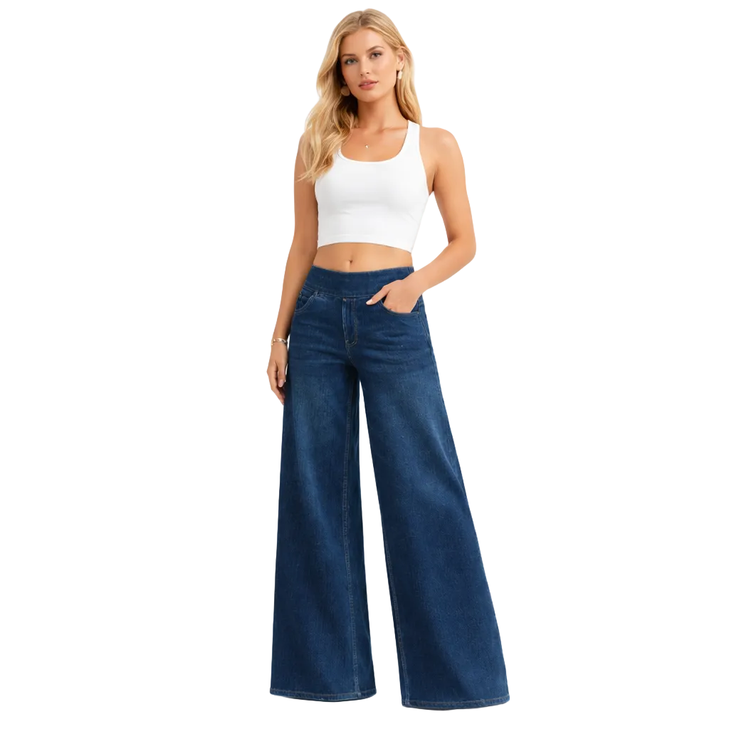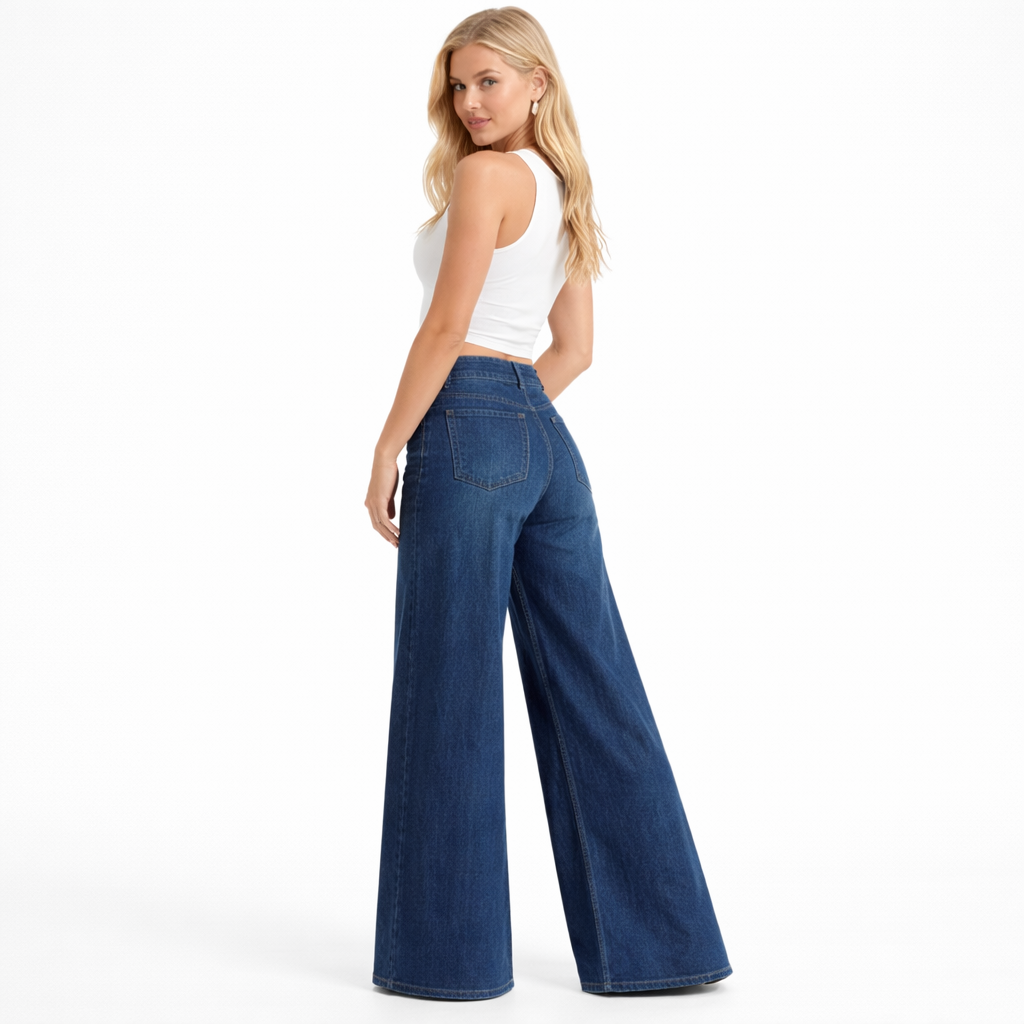 Dame Jeans med Vide Ben – Komfortable Bukser i Mørkeblå Denim