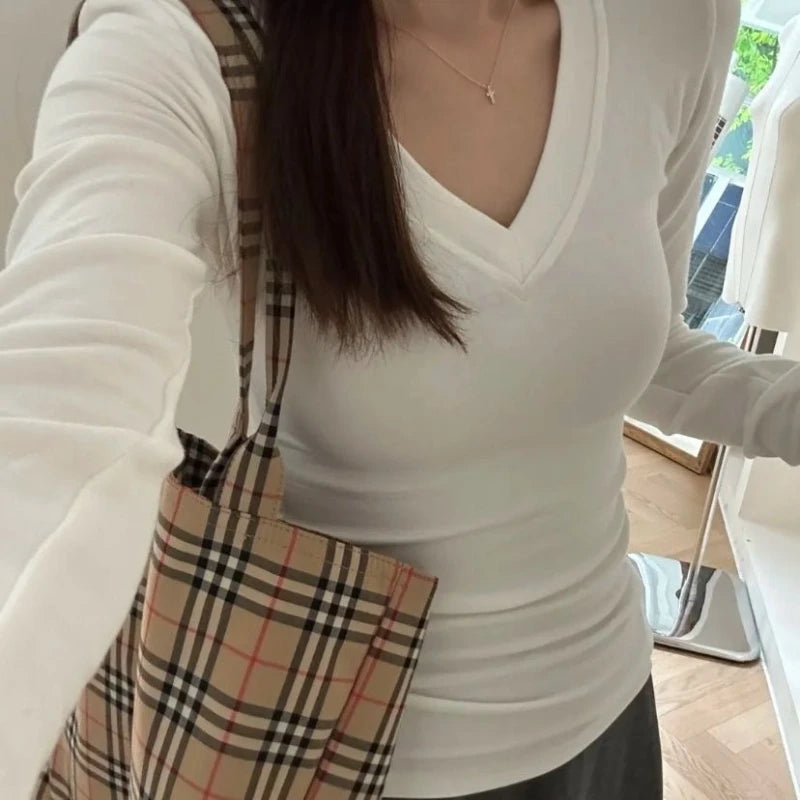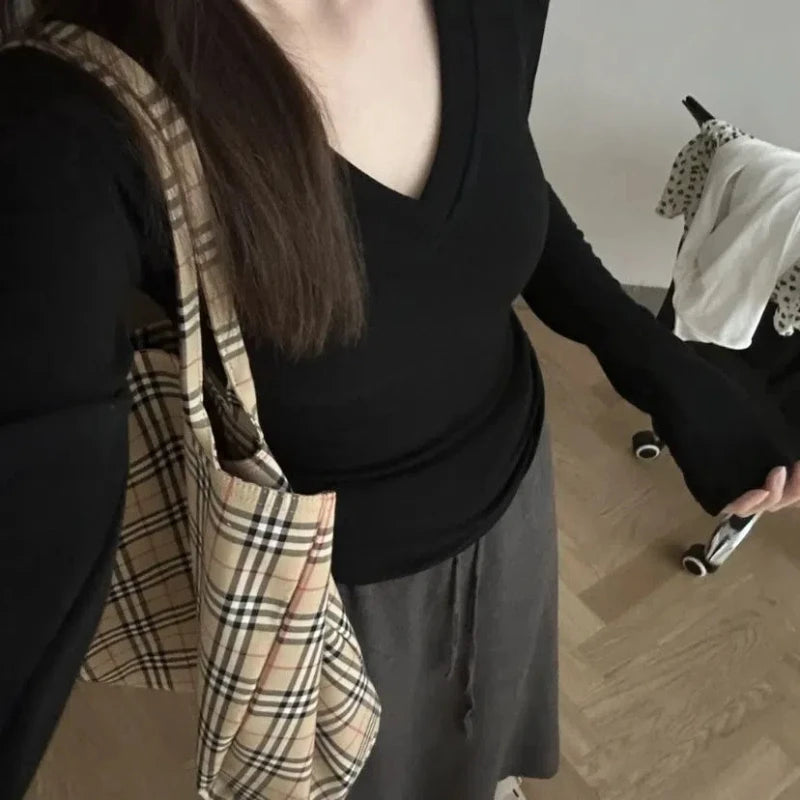 Damegenser med V-hals – Ensfarget, Langermet & Chic Design | Høst/Vinter