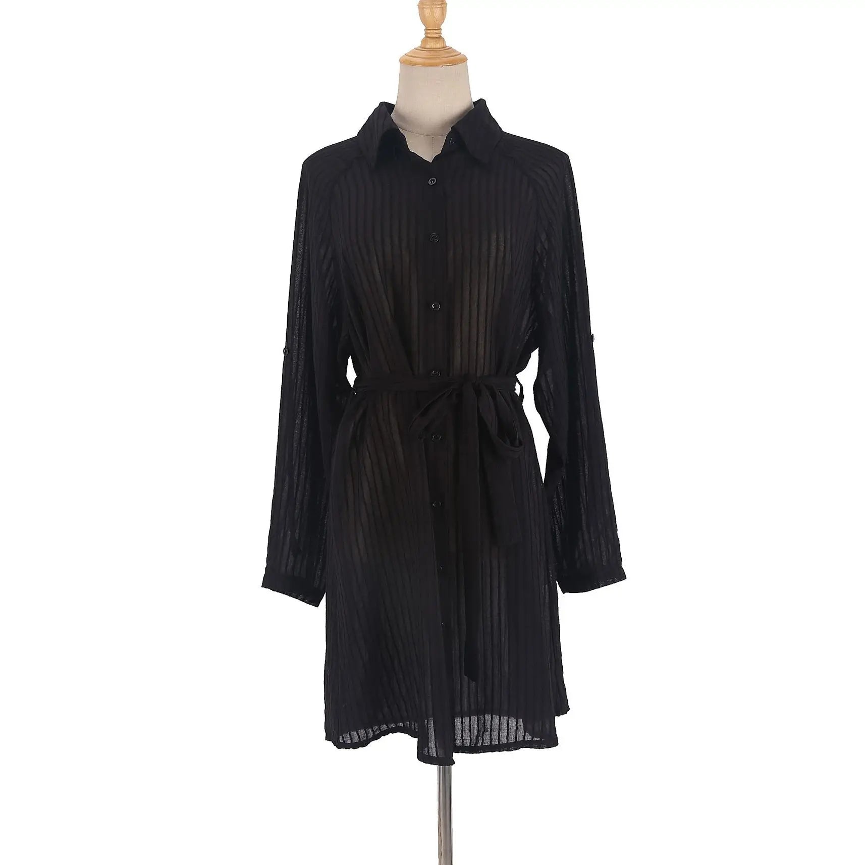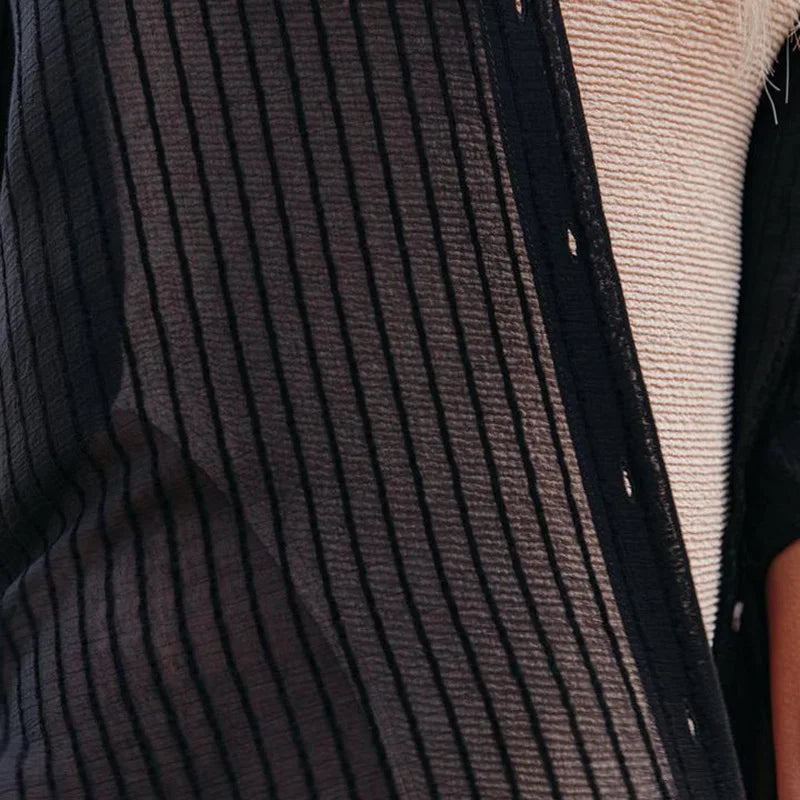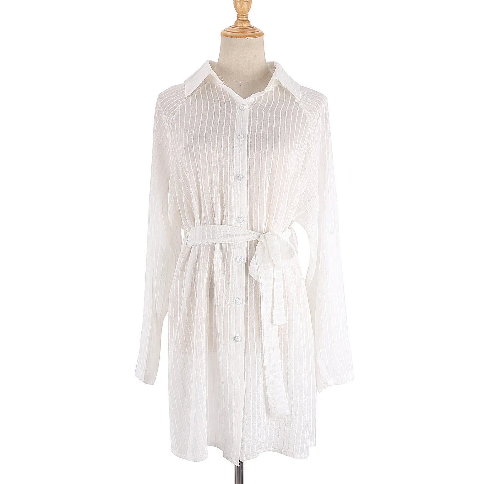 Gi strandlooken din et løft med denne elegante strandkimonoen – den perfekte cover-up til bikini og badedrakt. Med et tidløst design og et selvknyttende belte i midjen, gir den deg både komfort og en flatterende passform som passer alle kroppstyper.
