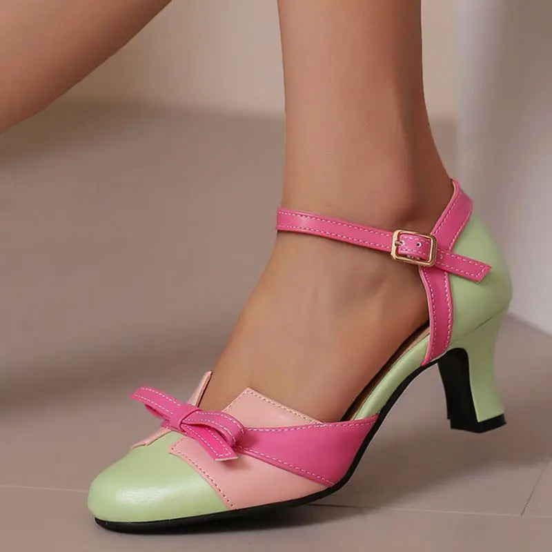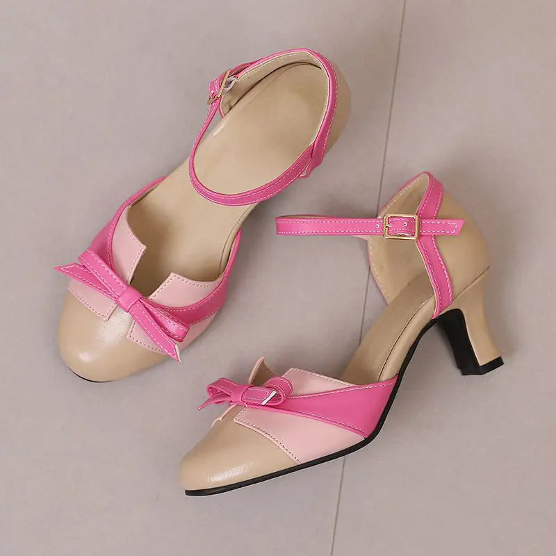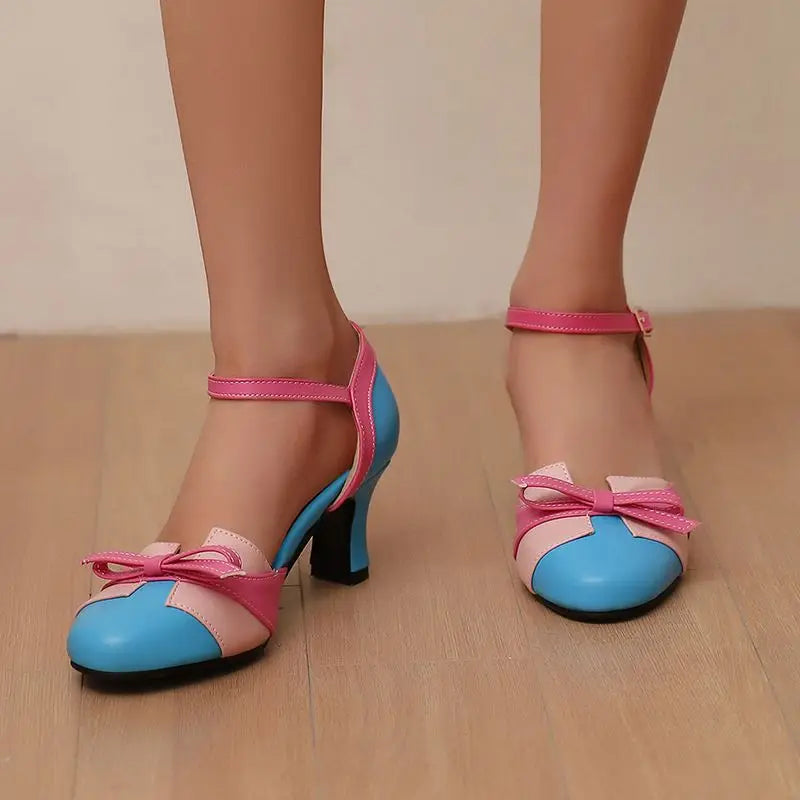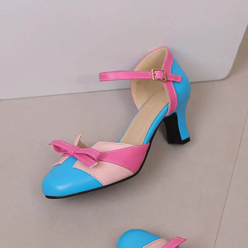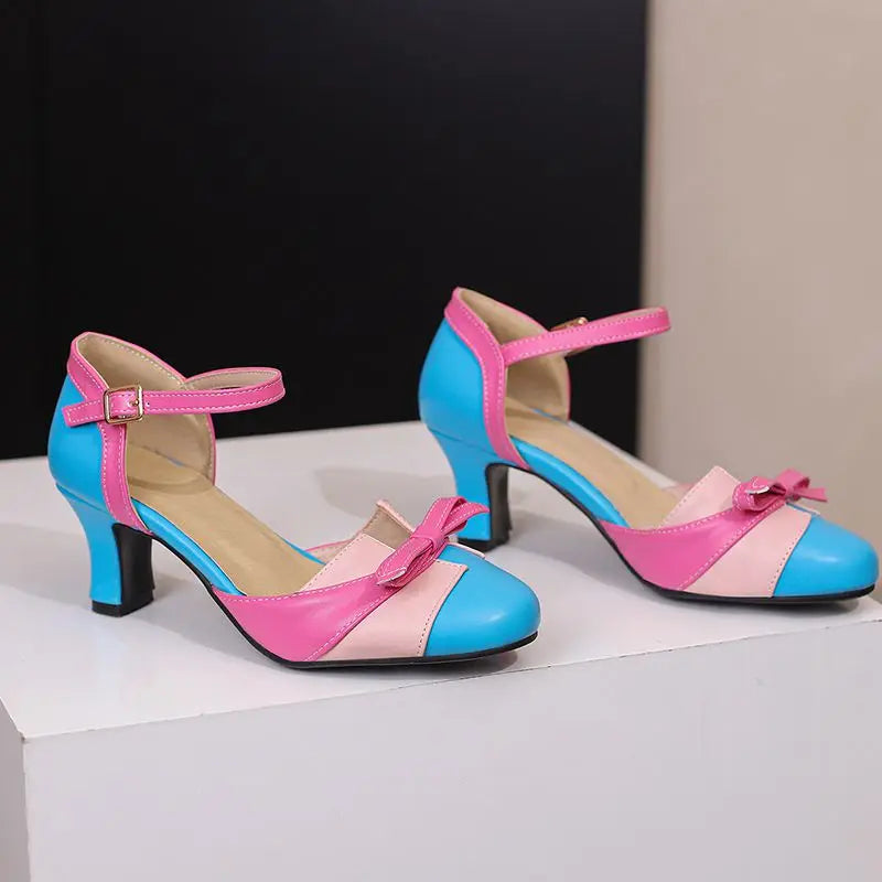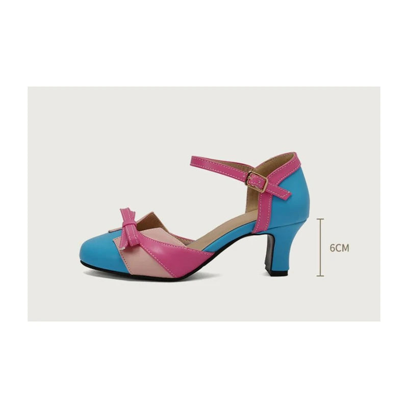 Girseaby Pumps med Sløyfe – Runde Tå, 6 cm Hæl og Ankelstropp (Str. 36–48)