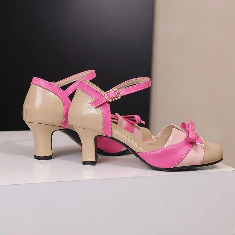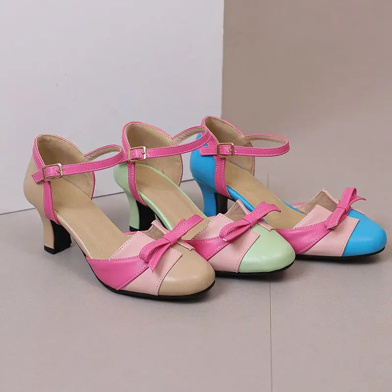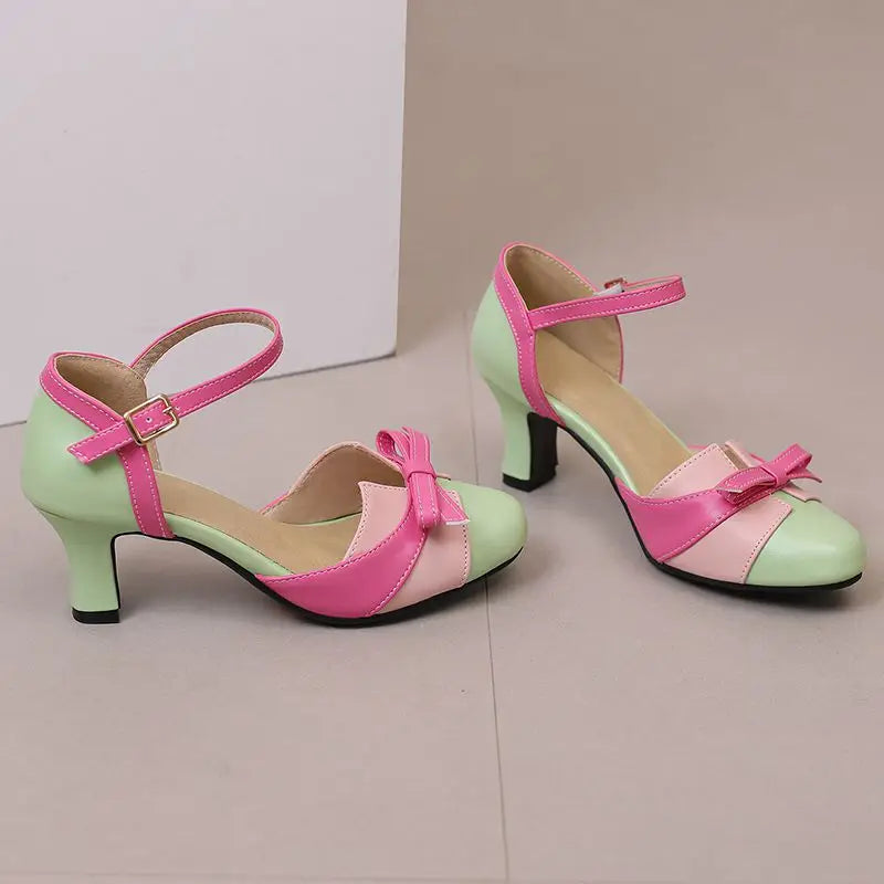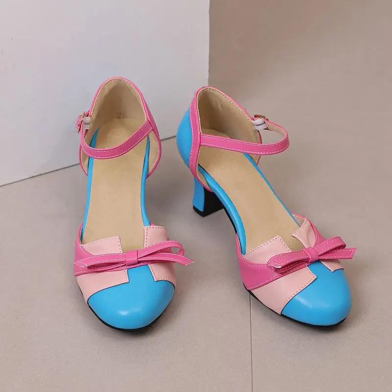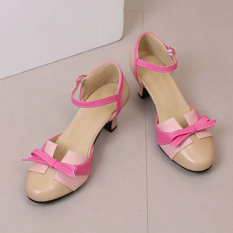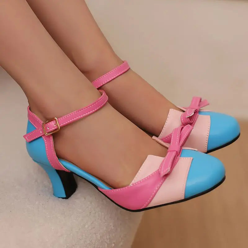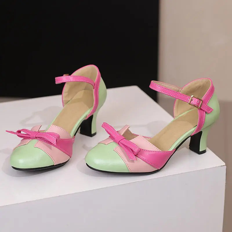 Girseaby Pumps med Sløyfe – Runde Tå, 6 cm Hæl og Ankelstropp (Str. 36–48)