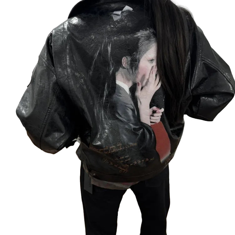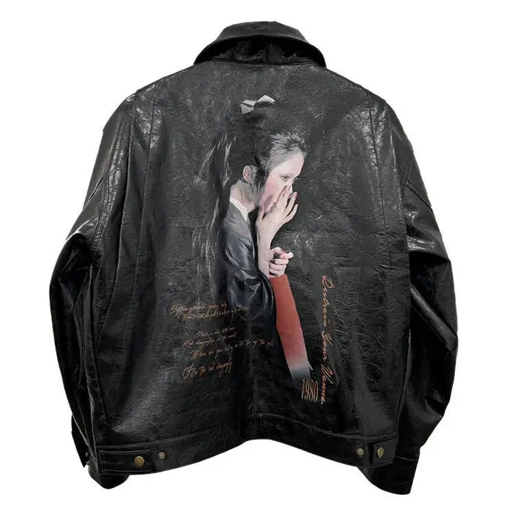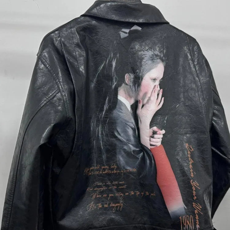 Gi garderoben din et edgy og trendy løft med denne Harajuku-inspirerte skinnjakken for dame – et perfekt valg for deg som elsker urban mote med vintage-vibber. Laget i slitesterkt PU-skinn med et unikt print, gir denne jakken deg et statement-plagg som kombinerer stil, attitude og komfort.