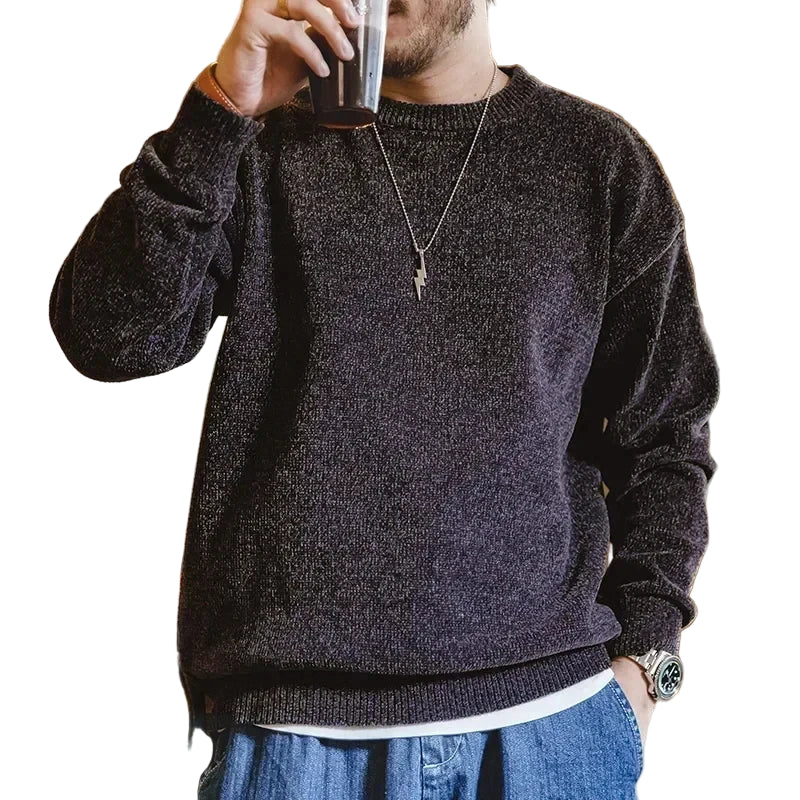 Herre Genser i Myk Chenille – Rund Hals, Ensfarget & Varm Strikkegenser | Høst & Vinter