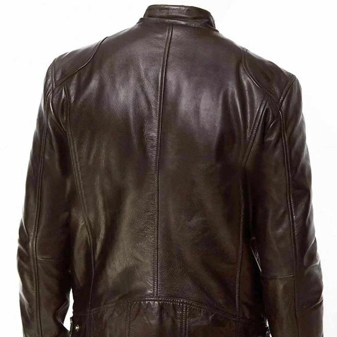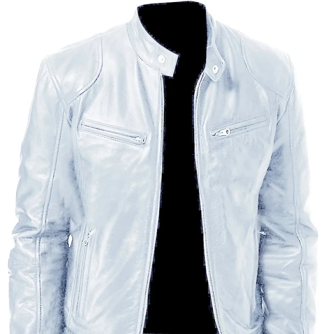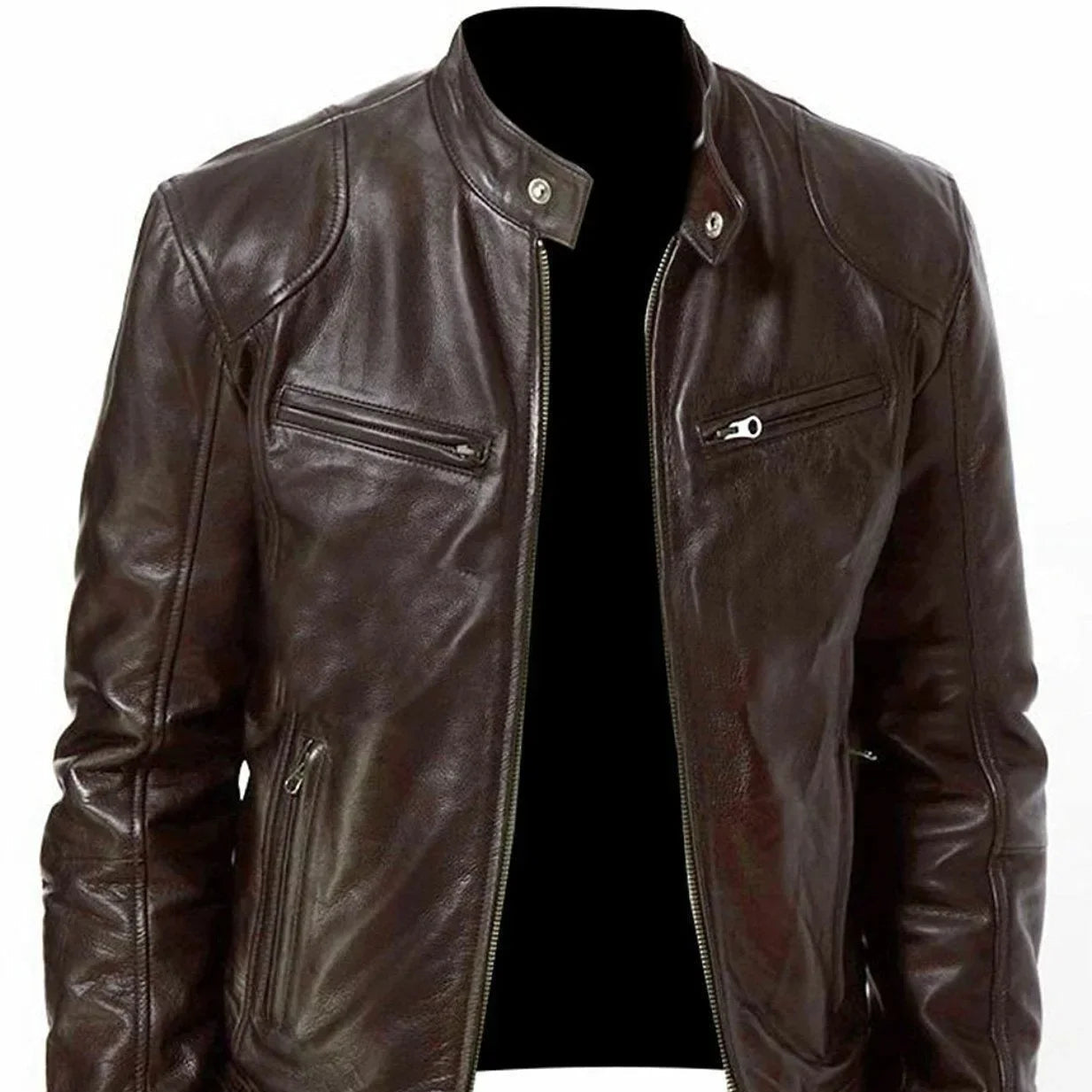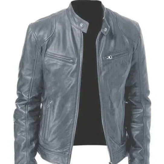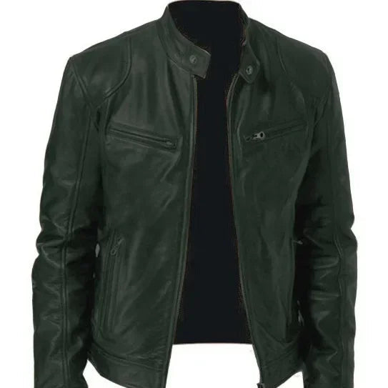 Den er laget av høykvalitets PU-skinn som ser ut og føles som ekte skinn, men er lettere, mer fleksibelt og enklere å vedlikeholde. Det slanke snittet gir en maskulin silhuett, mens det myke innerfôret sørger for komfort og varme på kjølige dager.
