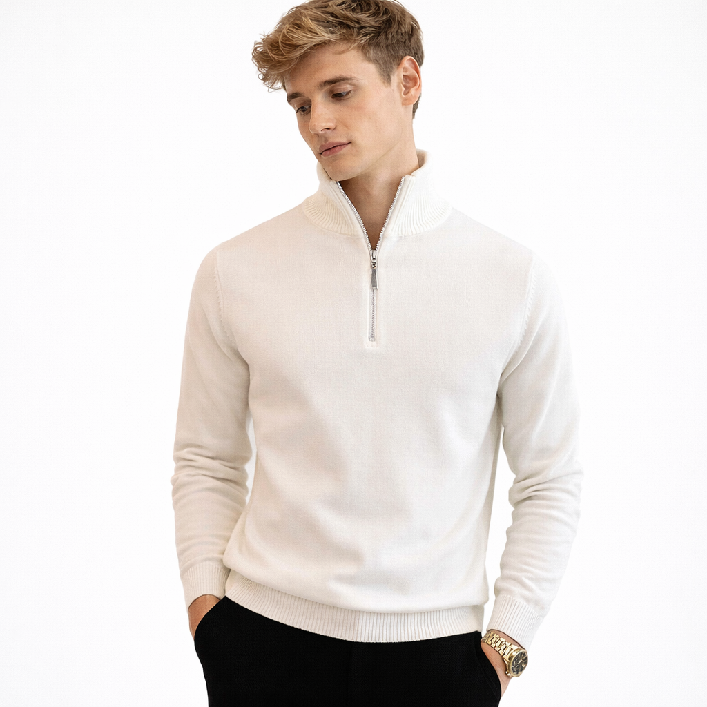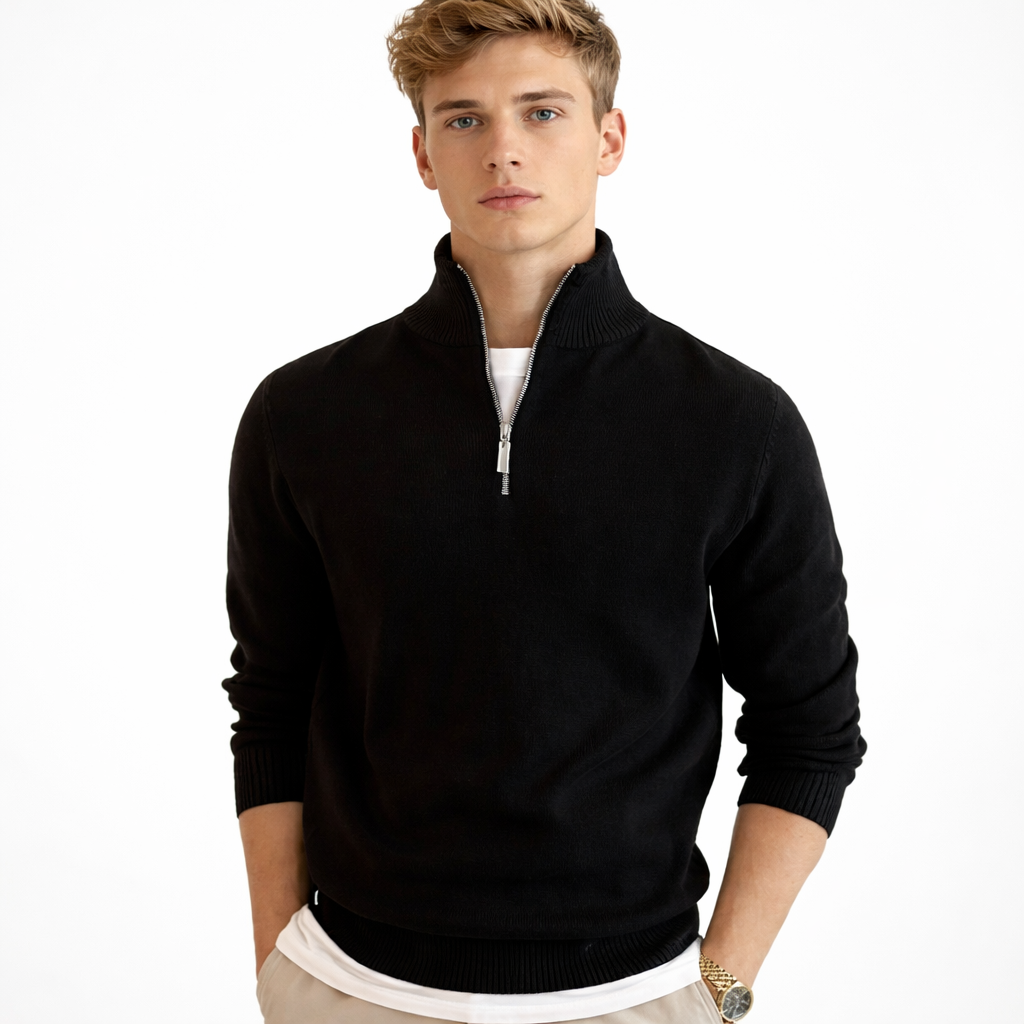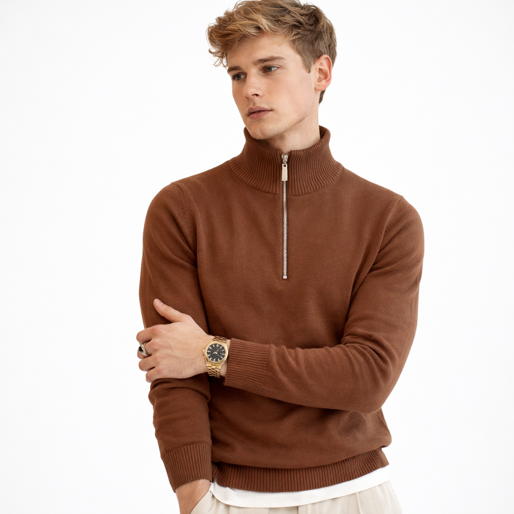 Herre Strikkegenser med Glidelås og Høy Hals – Klassisk Vintergenser i Myk Strikk | Elegant og Komfortabel Stil