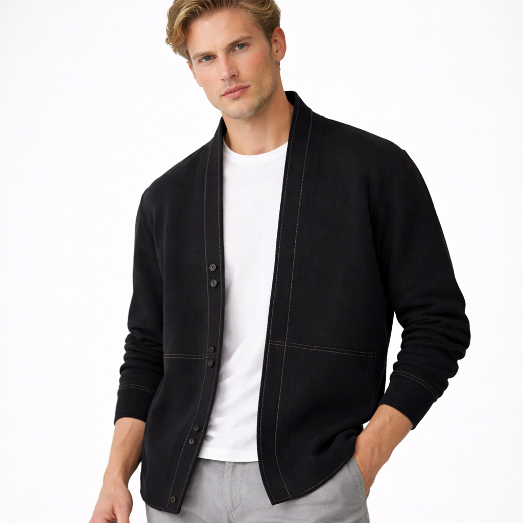 Herre Strikket Ulljakke – Varm Business Cardigan i Kasjmirblanding