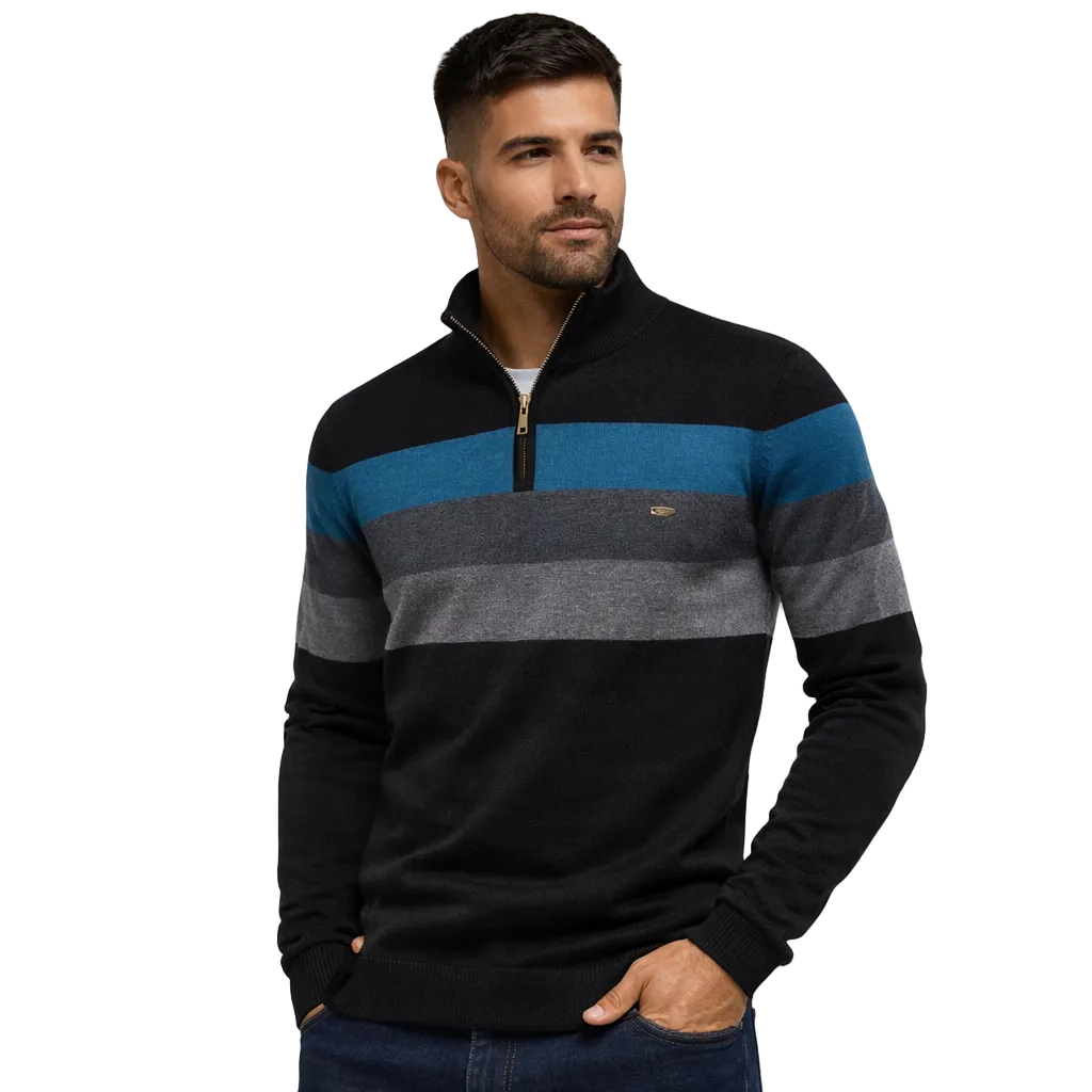 Herregenser med Høy Krage og Glidelås – Myk Bomullsgenser til Høst og Vinter | Varm og Elegant Pullover i Klassisk Stil