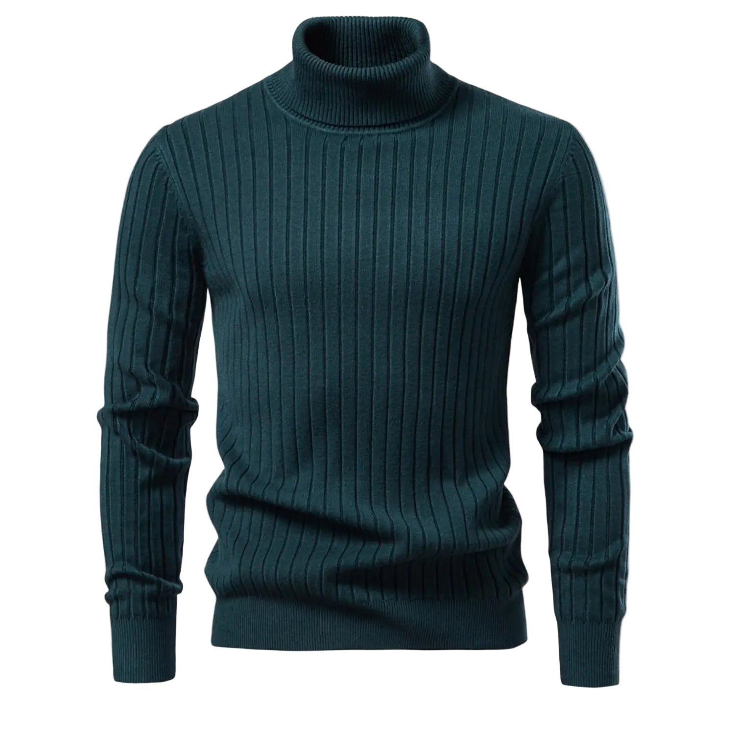Høyhalset Herregenser i Ullblanding – Ensfarget Strikkegenser med Diskré Striper | Varm og Elegant Vintergenser i Premium Kvalitet
