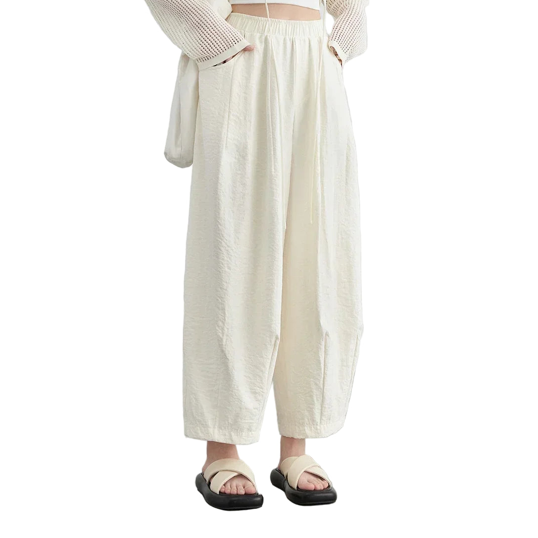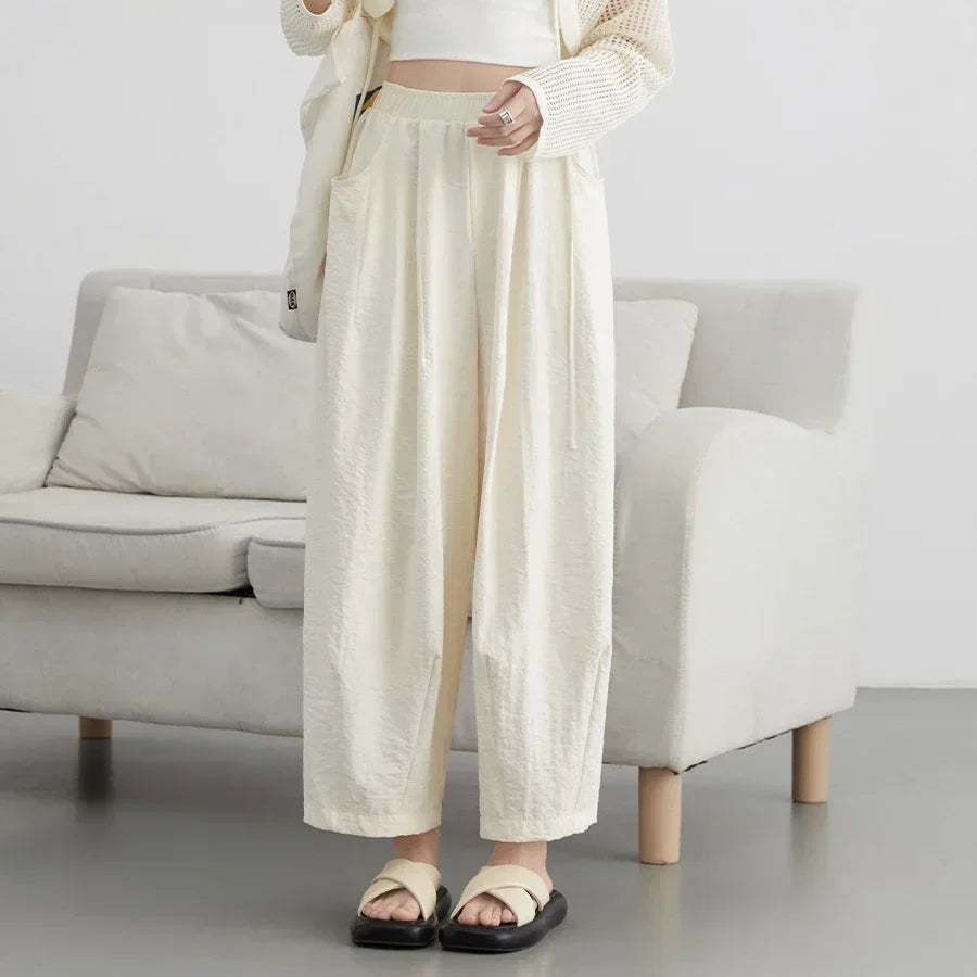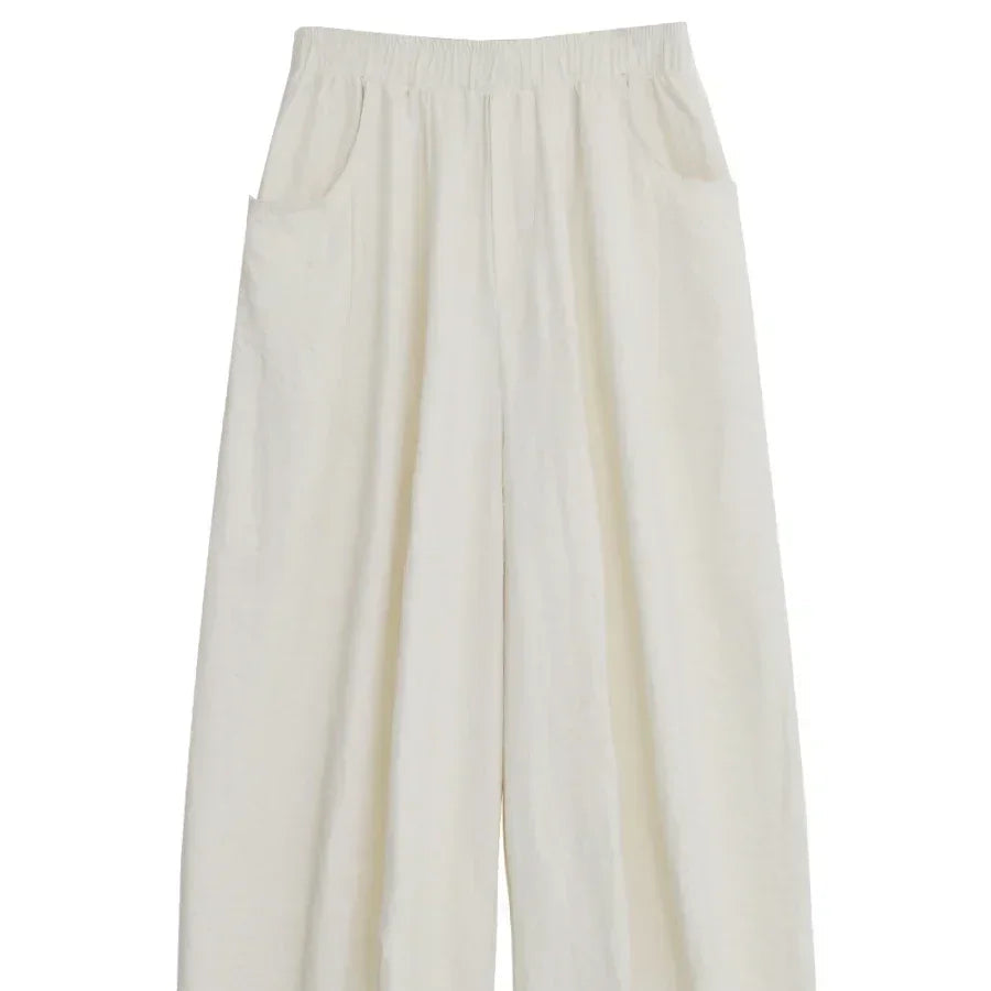 Hvite Vide Bukser for Dame – Høyt Liv, Elastisk Midje & Elegant Plisserte Sommerbukser 2025
