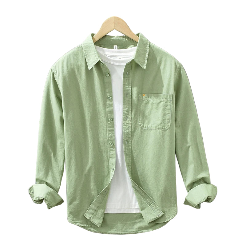 Japansk-inspirert Herreskjorte i 100 % Bomull – Langermet og Løs Casual Skjorte | Enkel, Trendy og Allsidig til Vår og Høst
