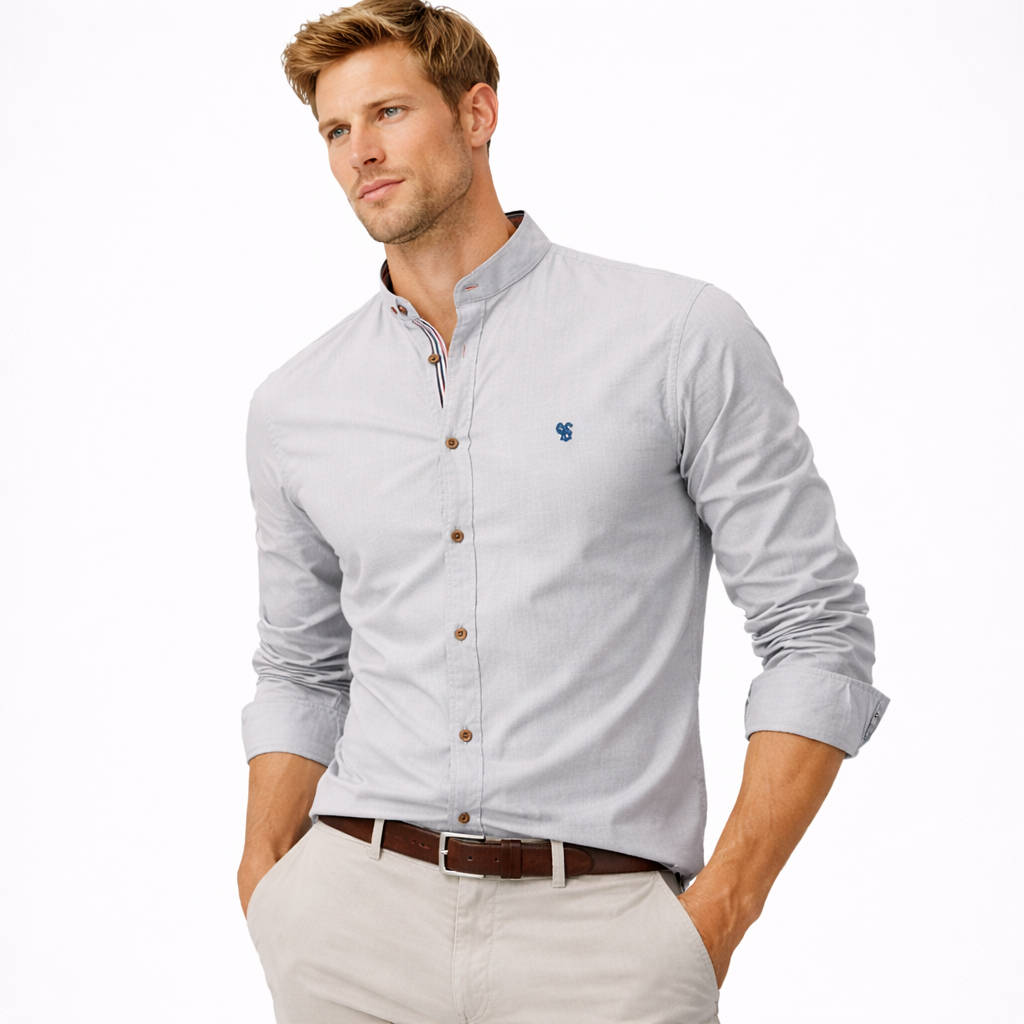 Klassisk Herreskjorte i 100% Bomull – Ensfarget, Langermet og Perfekt til Vår og Casual Business