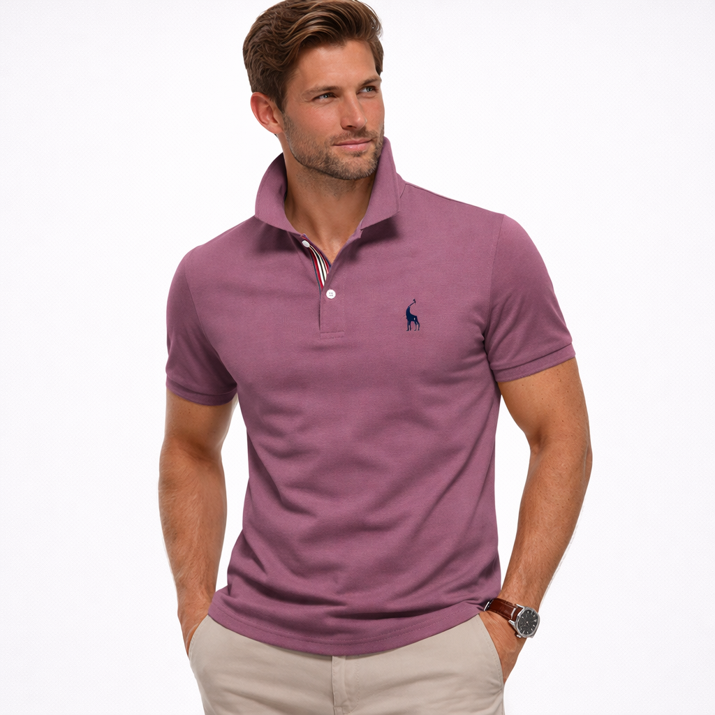 Denne poloskjorten fra er et must-have for enhver mann som ønsker en stilsikker, komfortabel og allsidig look i sommergarderoben. Laget i myk og pustende bomull, gir den en naturlig og lett følelse – ideell for varme dager både på jobb og i fritiden.