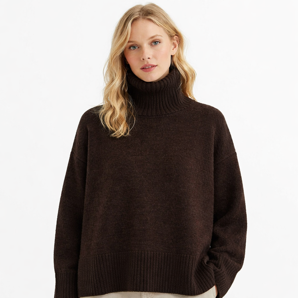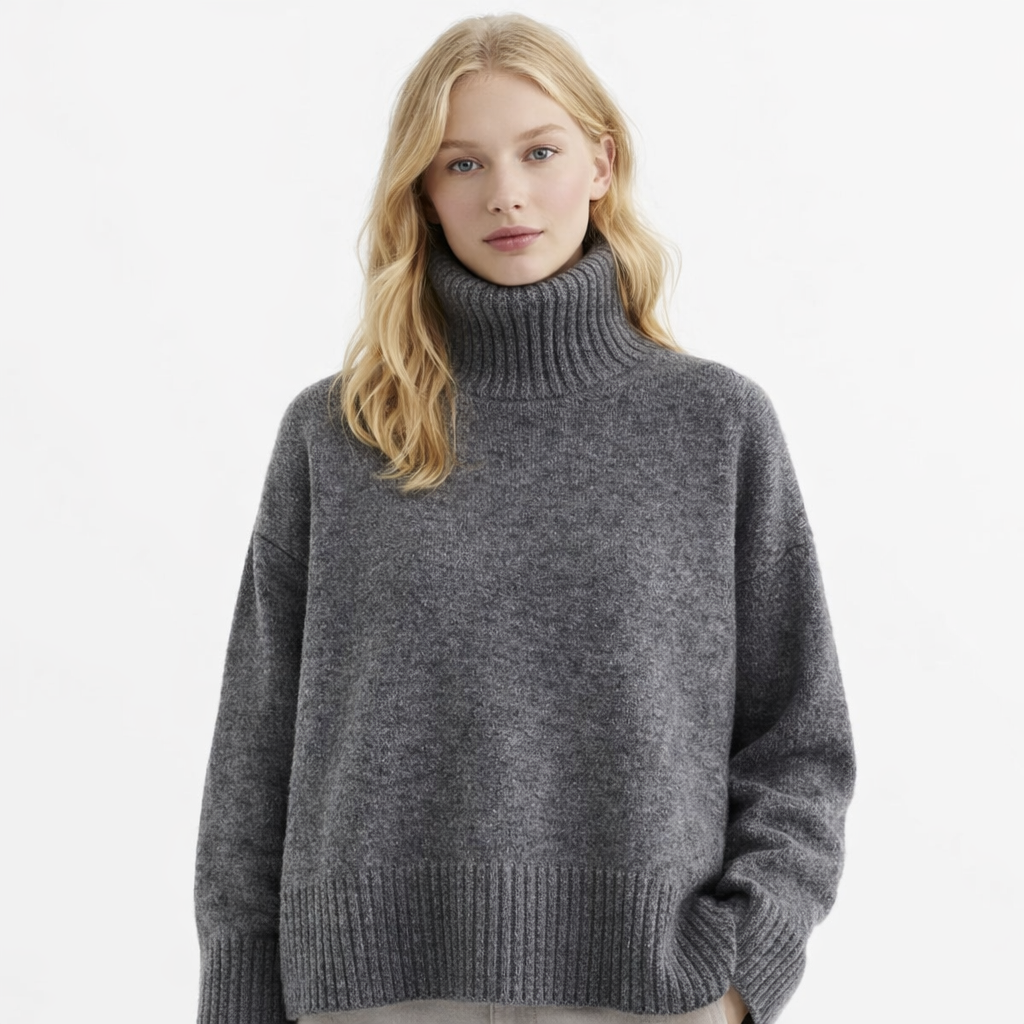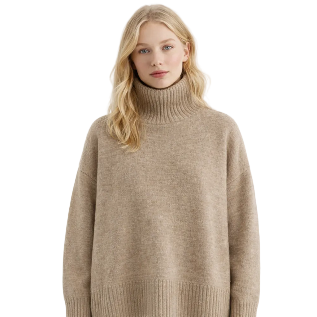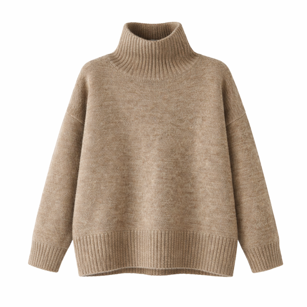 Koreansk Høyhalset Strikkegenser for Kvinner – Løs, Myk og Varm Genser til Høst og Vinter