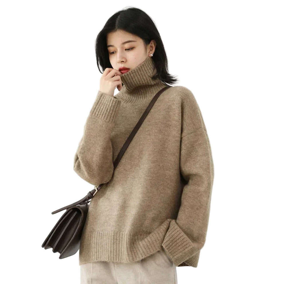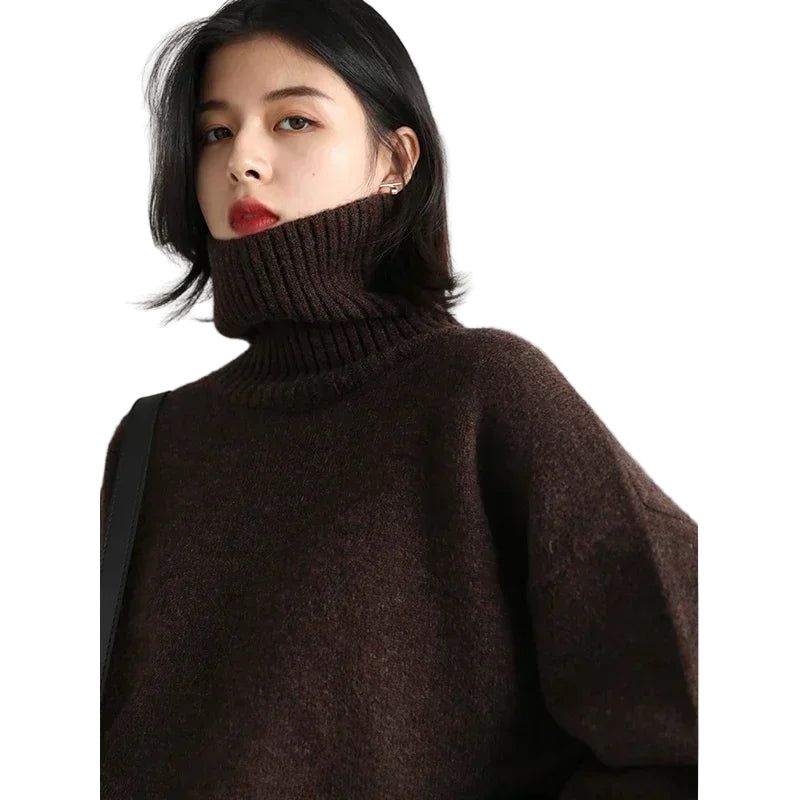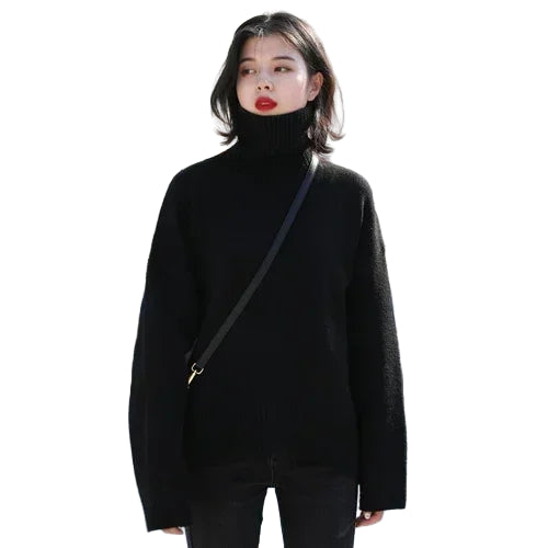 Koreansk Høyhalset Strikkegenser for Kvinner – Løs, Myk og Varm Genser til Høst og Vinter