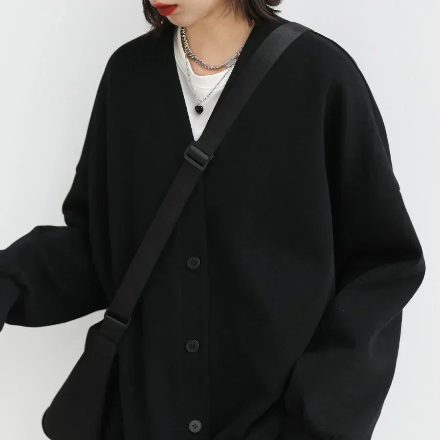 Denne koreansk-inspirerte V-halsede sweatshirt-en kombinerer komfort, varme og stil på den mest elegante måten. Perfekt for deg som vil ha et plagg som fungerer like godt på kontoret som til avslappede hverdager.