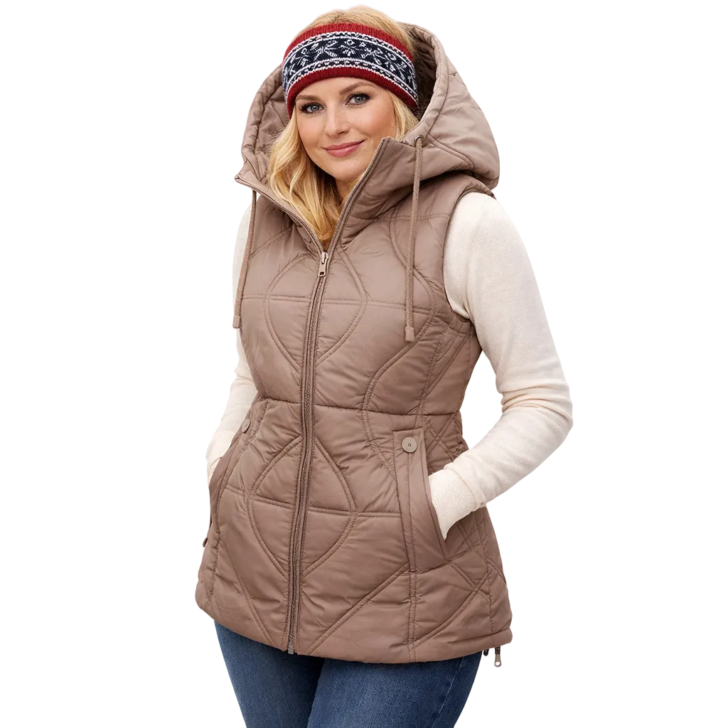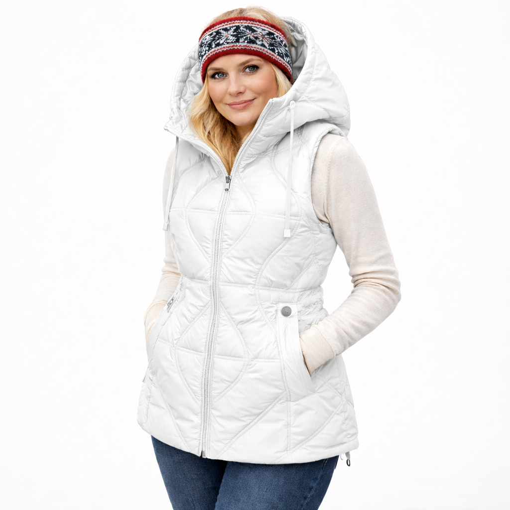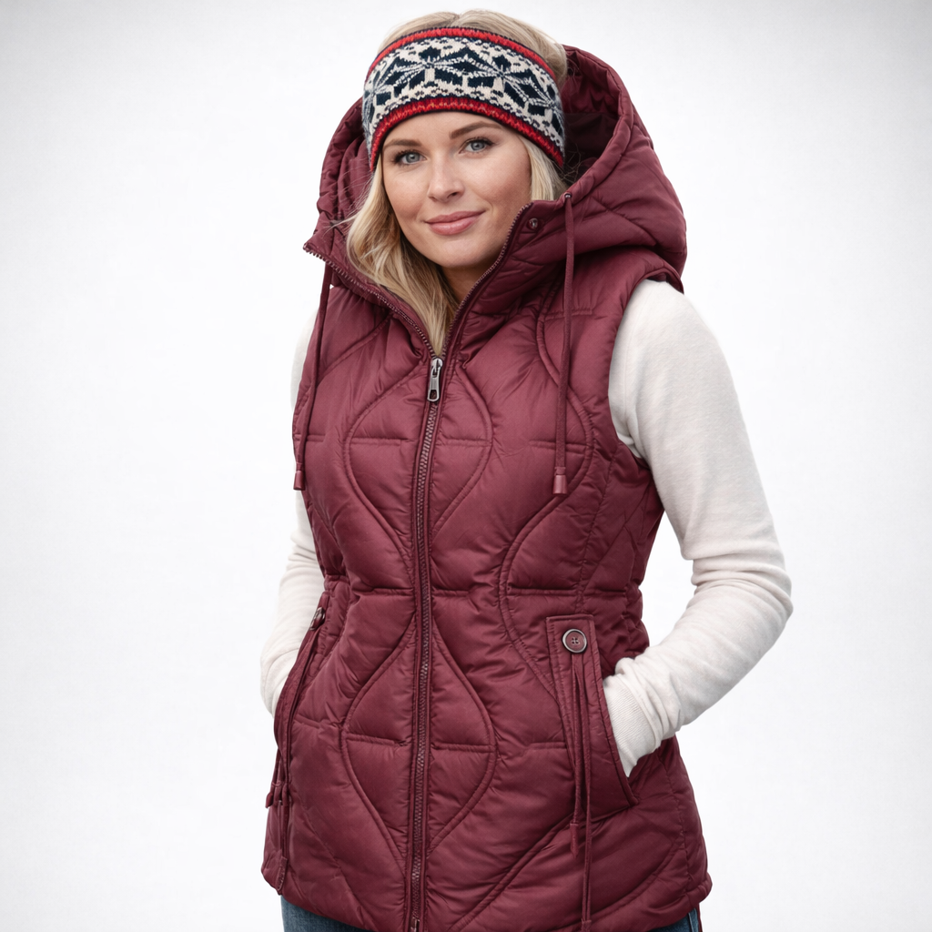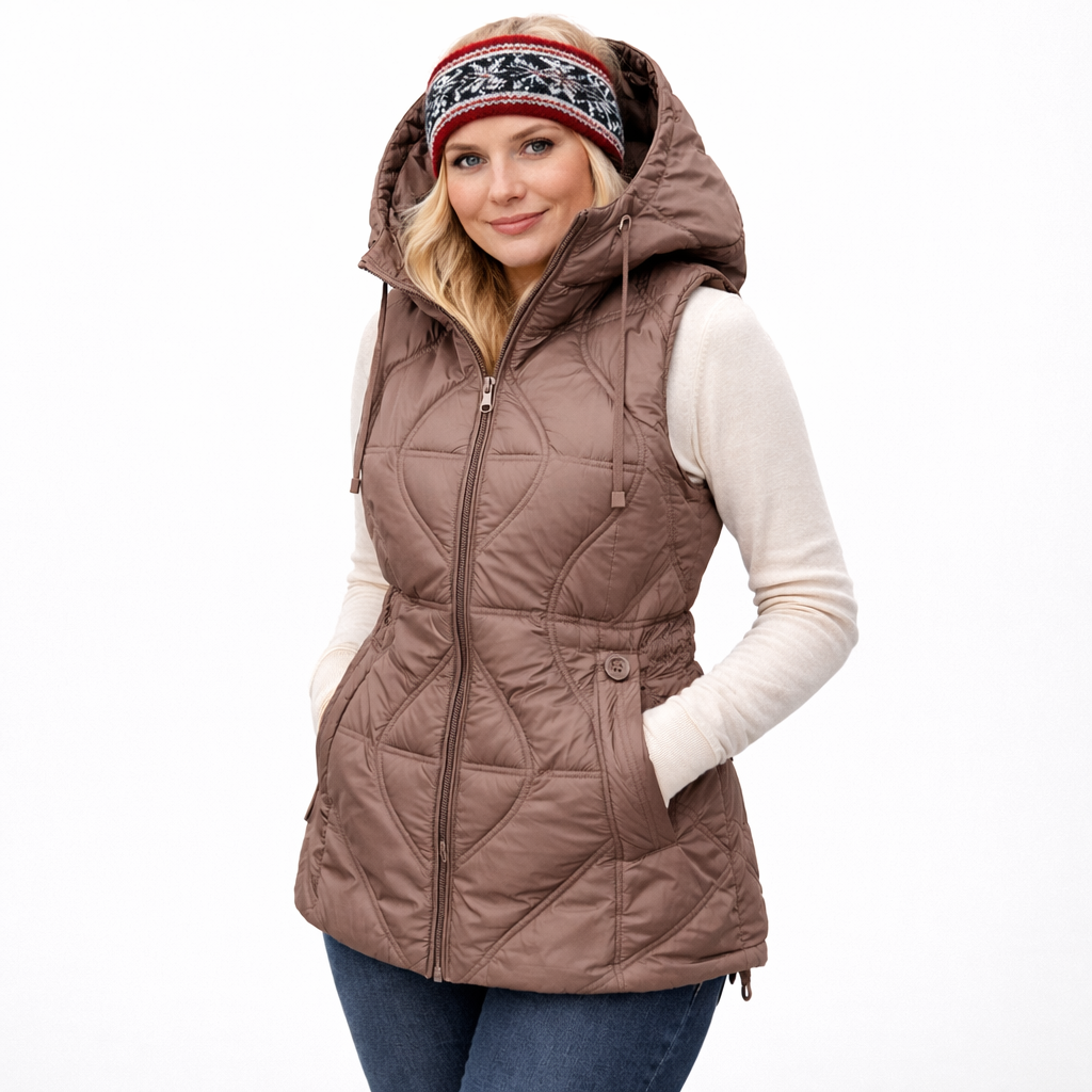 - Type: Kort, vattert damevest / parkas-vest