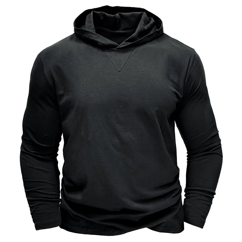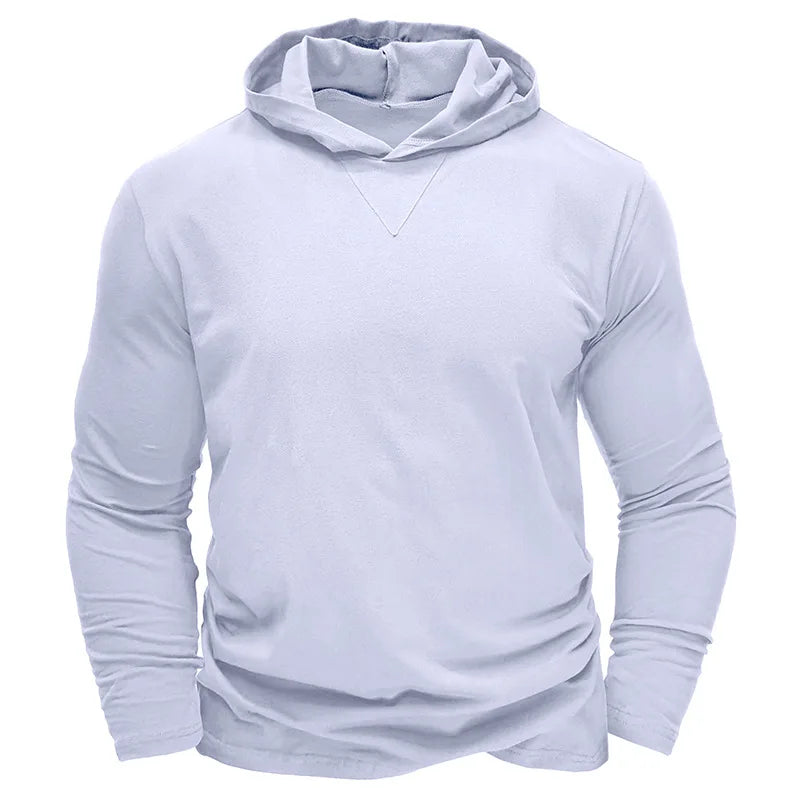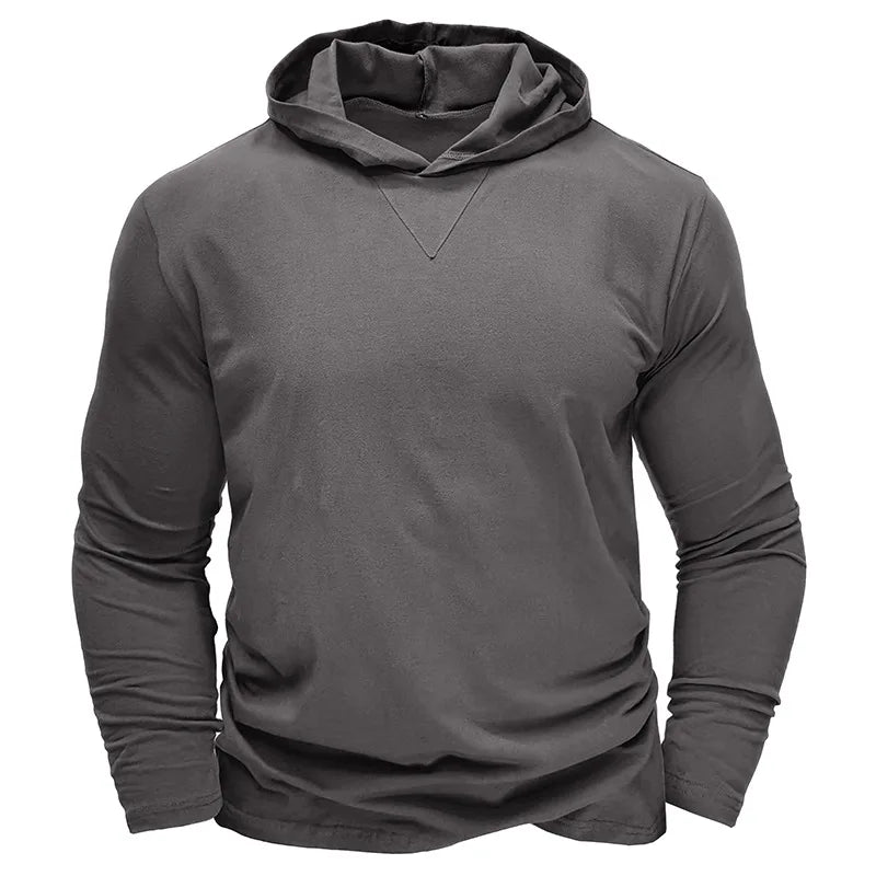 Langermet Hette-T-skjorte for Menn – Myk Bomull, Løs Passform | Enkel og Stilig Basic til Høst og Vinter