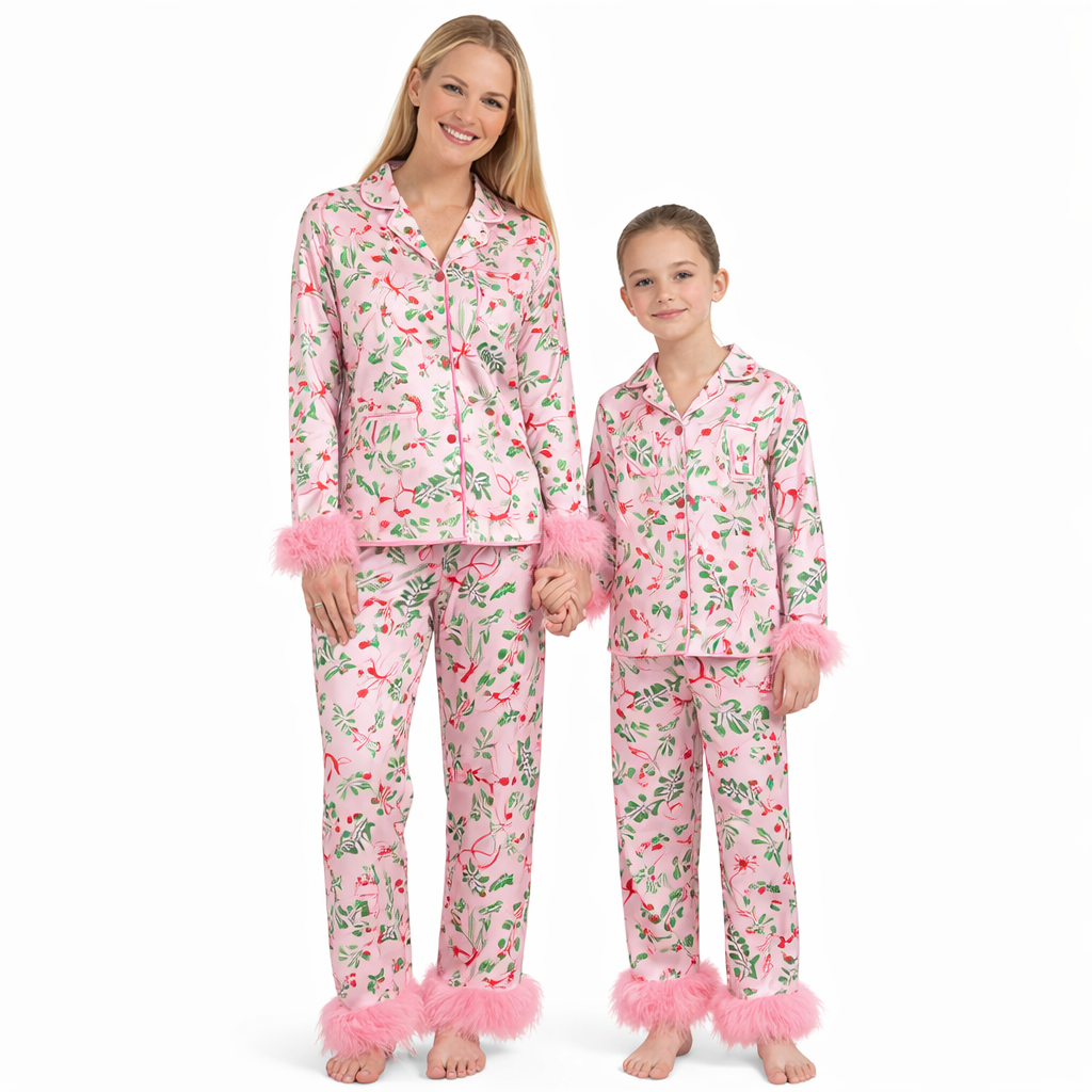 Skap ekte julekos med et matchende “Mommy & Me” pysjamassett for mamma og datter! Dette elegante 2-delte settet er laget for å gjøre desember litt ekstra magisk – perfekt til julemorgen, pepperkakebaking, filmkvelder og koselige bilder rundt juletreet.