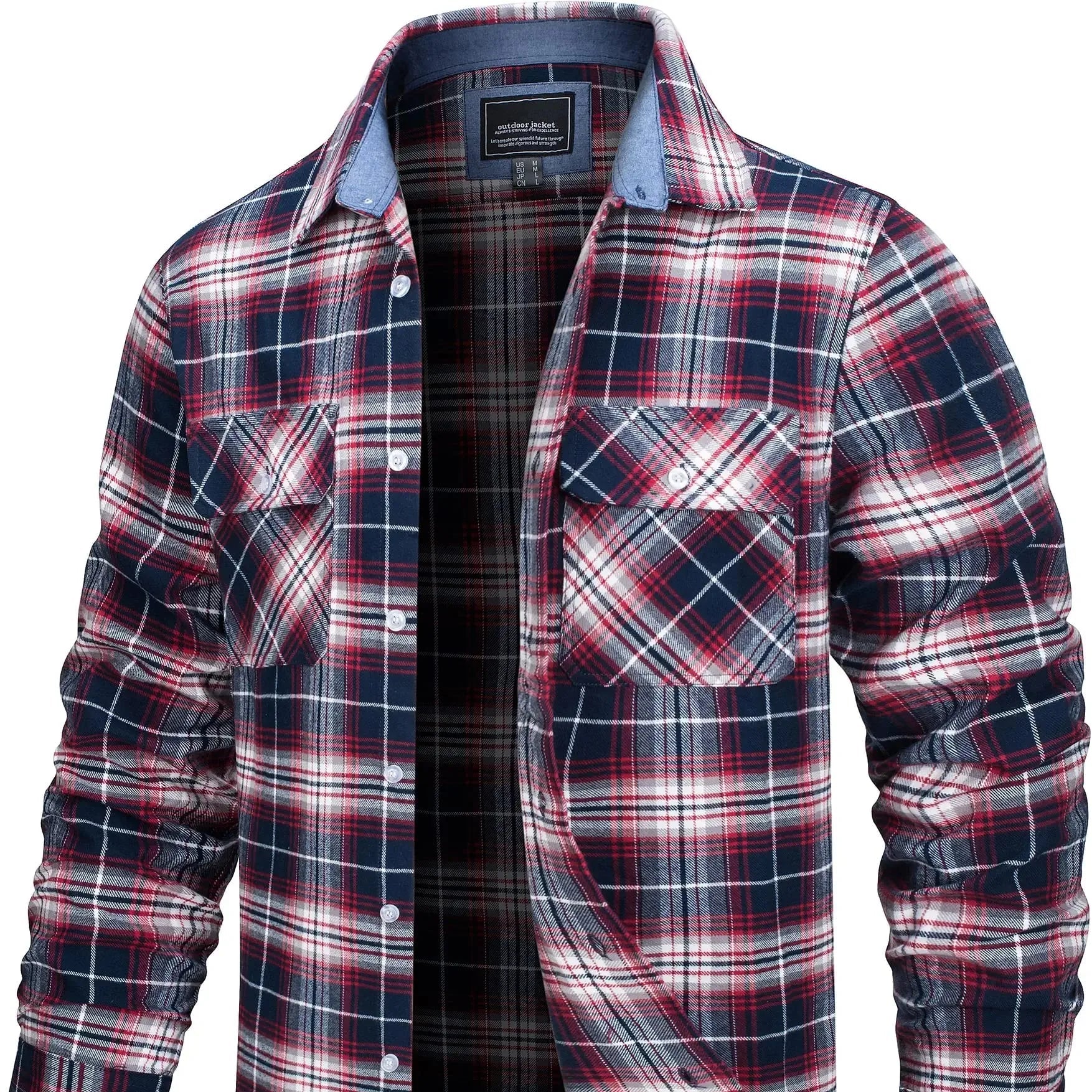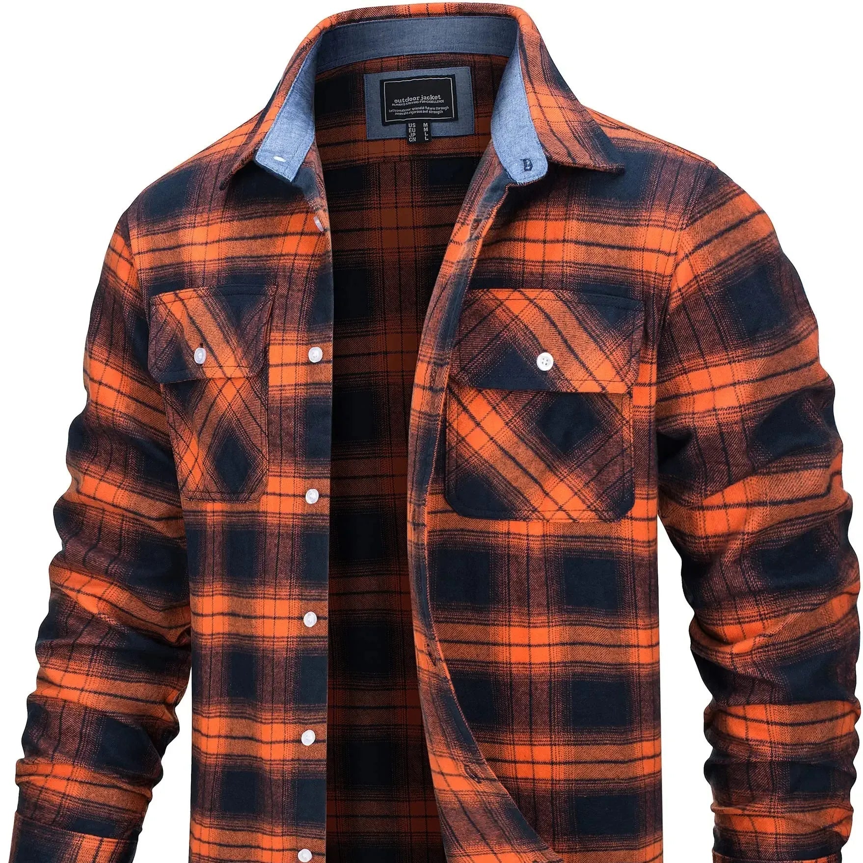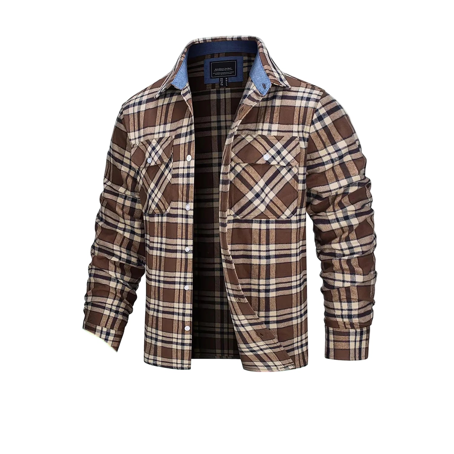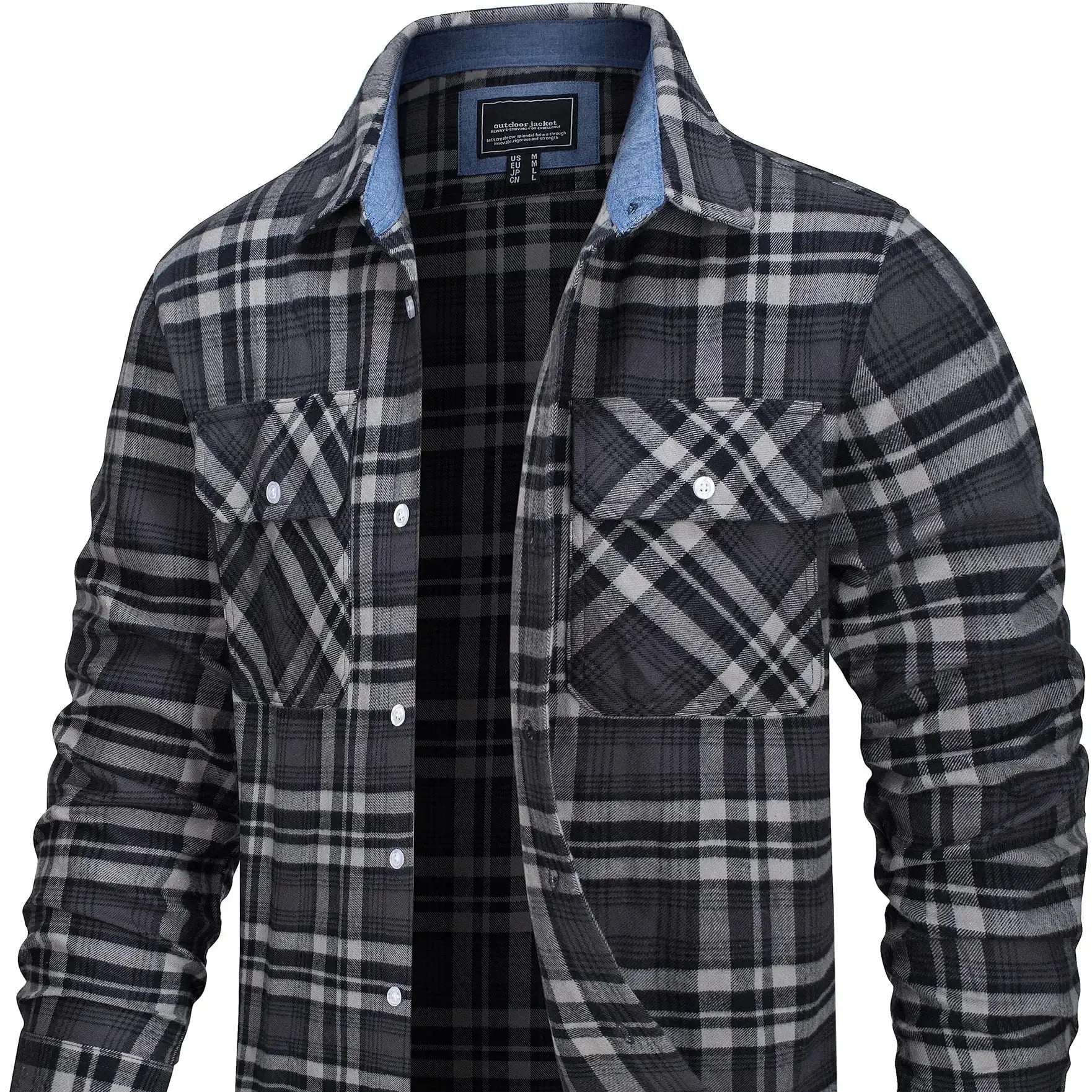 Laget av myk bomullsflanell, føles stoffet varmt, men ikke tungt – ideelt for vår, høst og kjølige sommerkvelder. Den løse passformen gir deg bevegelsesfrihet og gjør den perfekt som et mellomlag eller lett jakke.