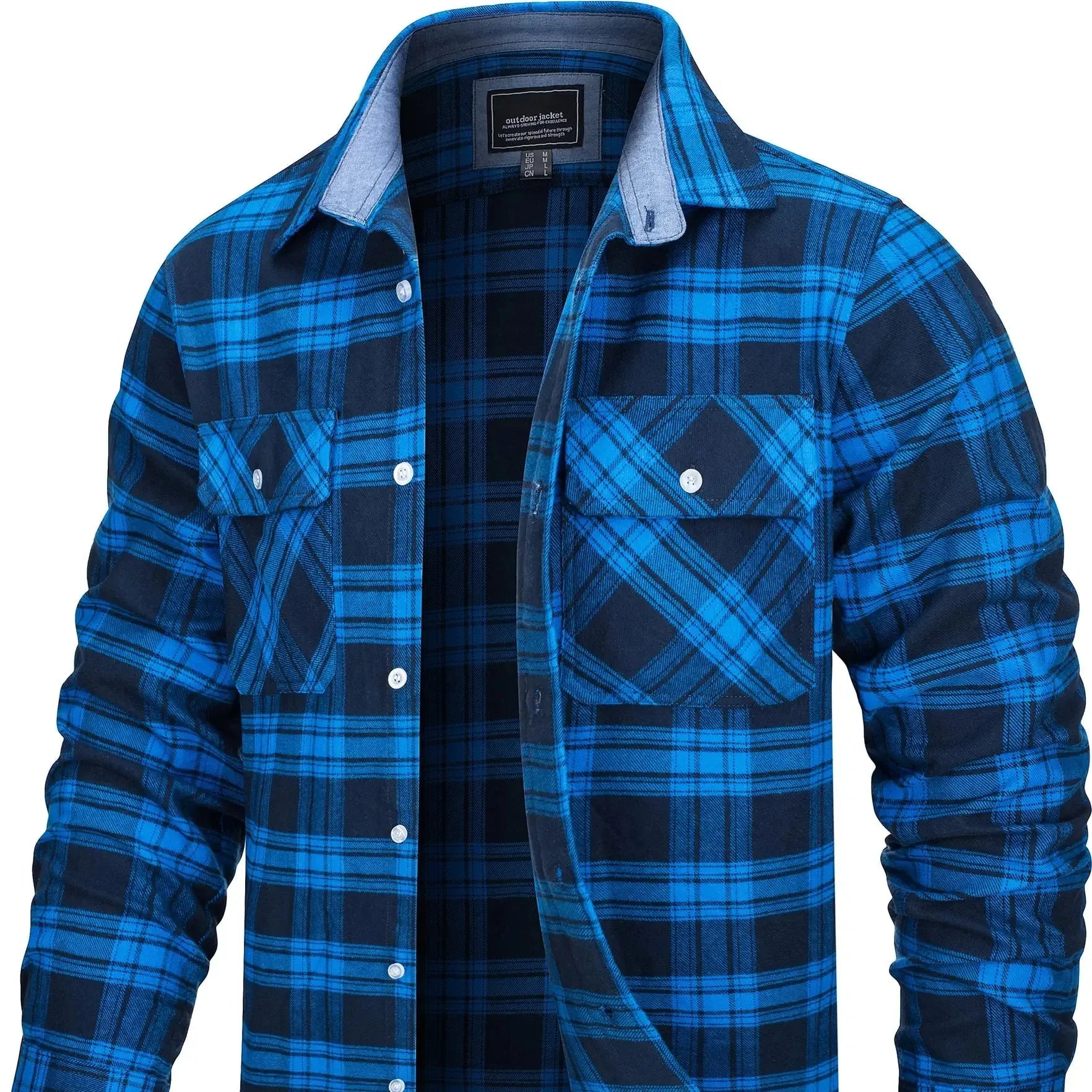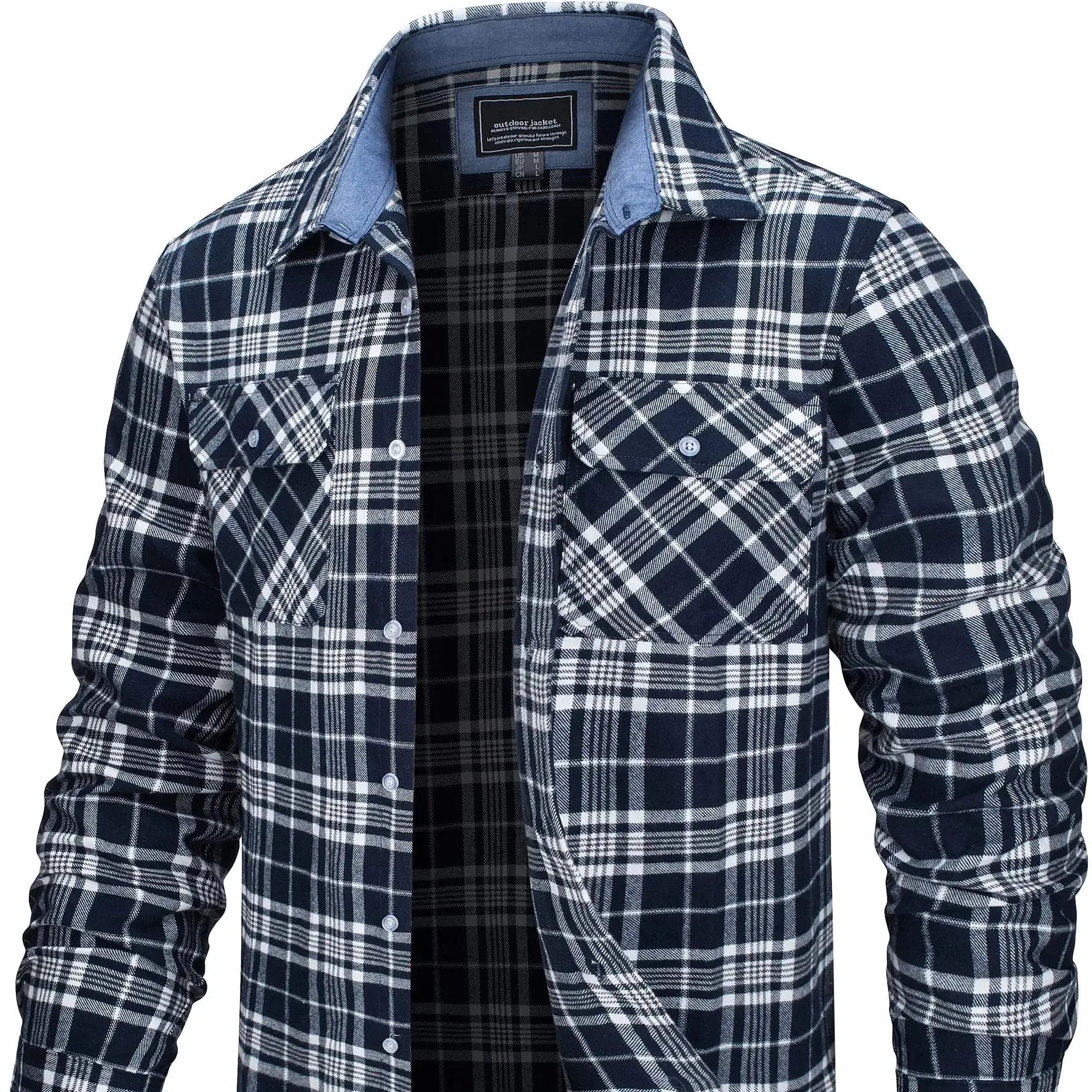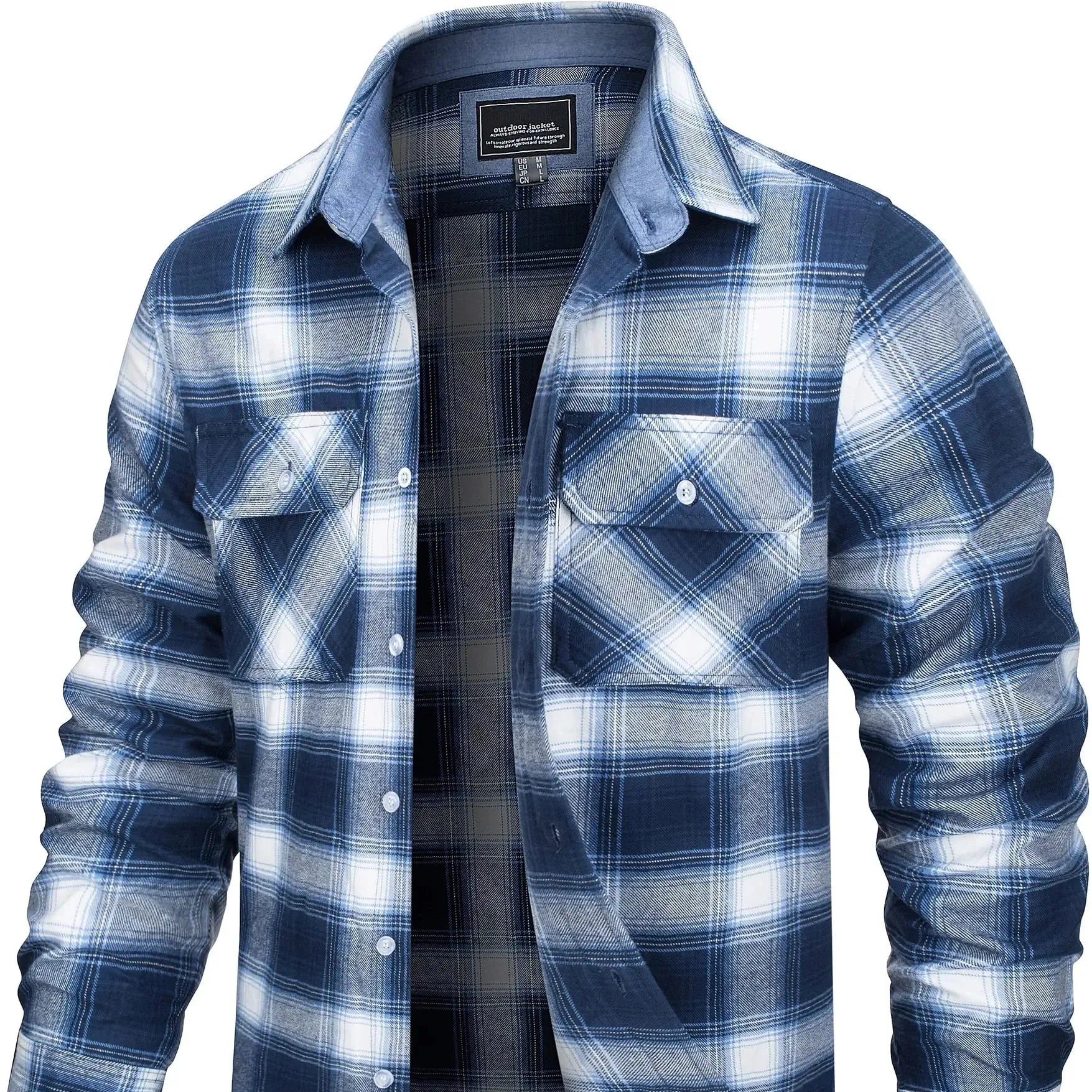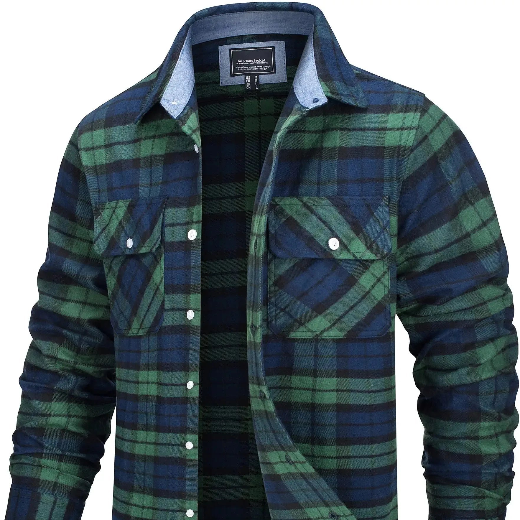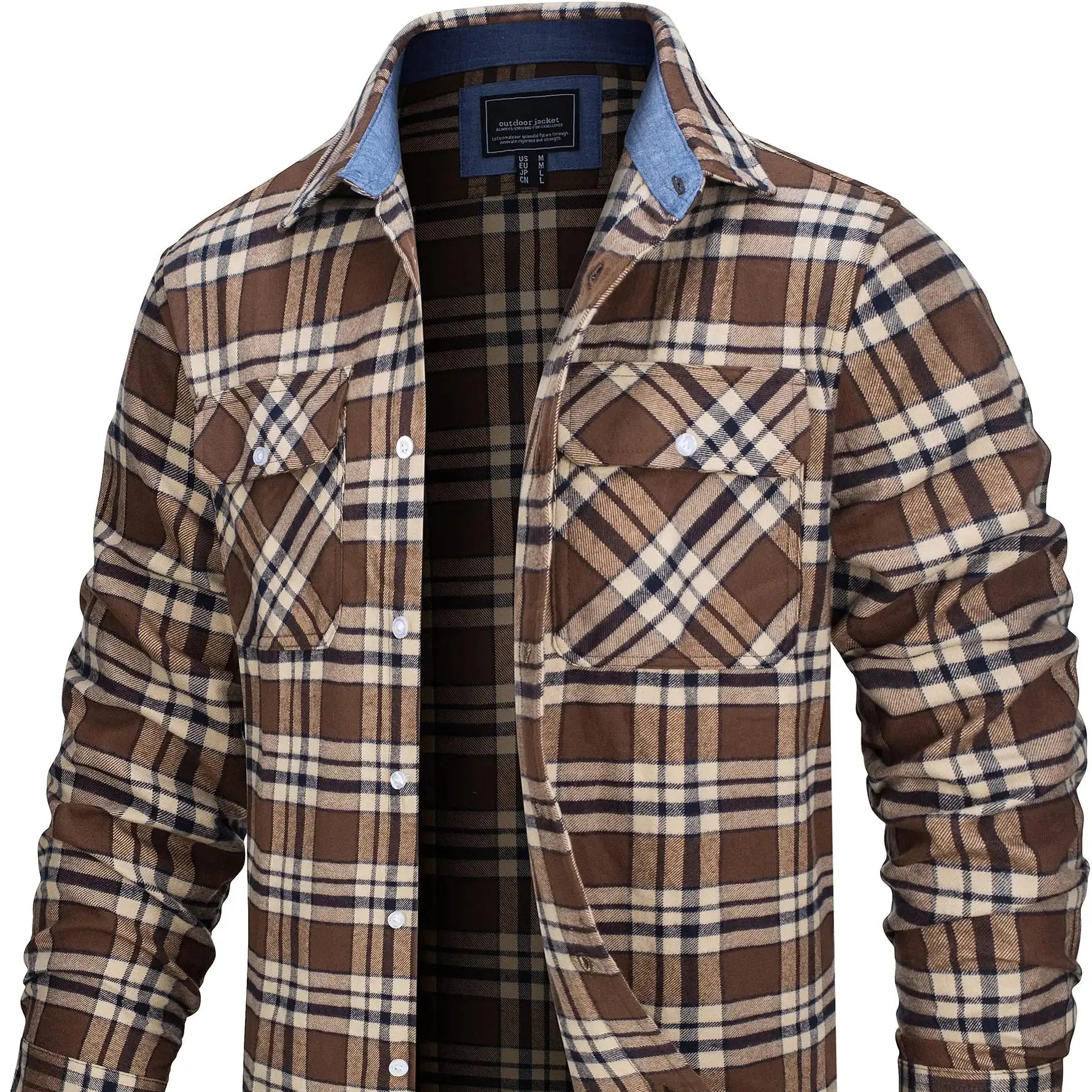 Laget av myk bomullsflanell, føles stoffet varmt, men ikke tungt – ideelt for vår, høst og kjølige sommerkvelder. Den løse passformen gir deg bevegelsesfrihet og gjør den perfekt som et mellomlag eller lett jakke.