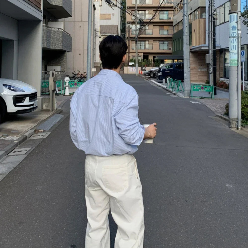 Få den perfekte balansen mellom komfort og stil med denne oversized stripete skjorten i koreansk streetwear-stil. Denne allsidige skjorten fungerer både som lett jakke og klassisk skjorte, og passer perfekt til både vår og høst.