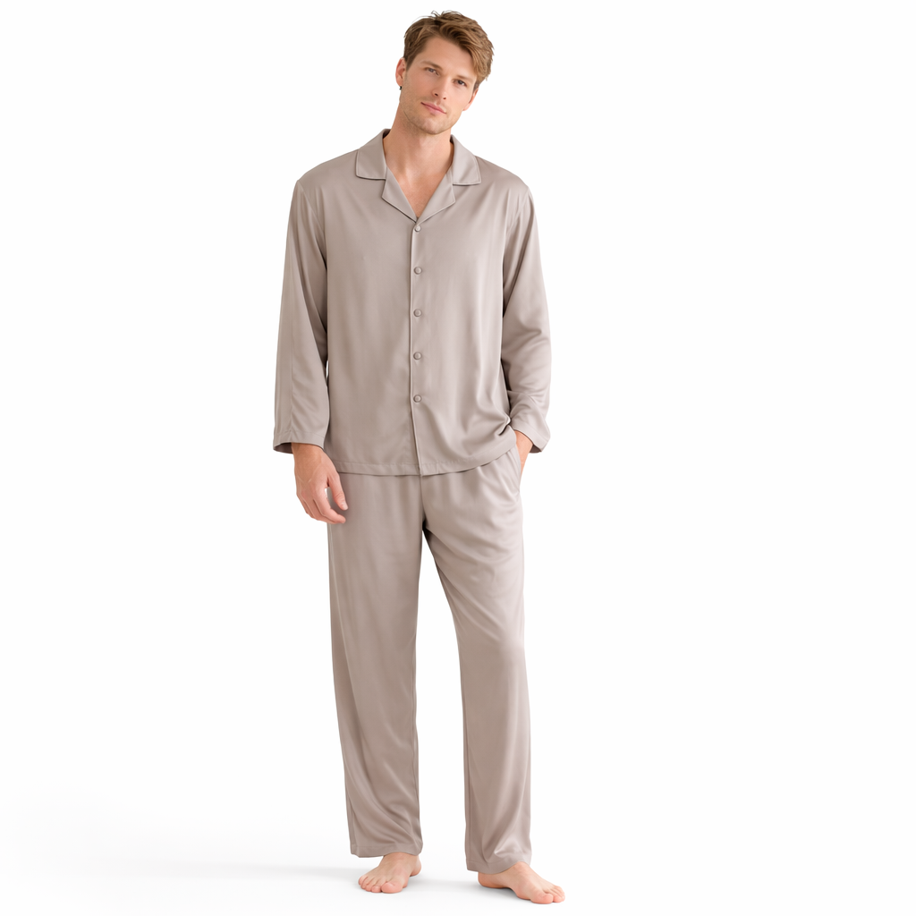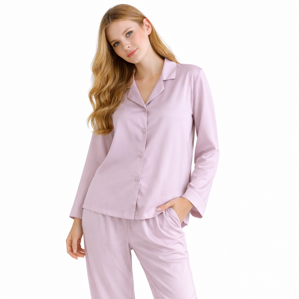 Leter du etter et pysjamasett som føles lett, mykt og behagelig – spesielt på vår- og sommernetter? Dette ensfargede pysjamasettet i bomull og viskose er laget for deg som vil ha en avslappet og “ren” look hjemme, uten å gå på kompromiss med komforten. Settet består av en langermet topp og matchende bukse, perfekt til både soving og late morgener i helgen.