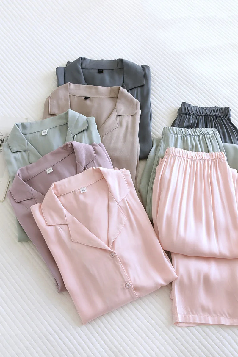 Bomull gir en myk og naturlig følelse mot huden, mens viskose bidrar med en glatt, lett drapering som gjør at settet føles ekstra behagelig og luftig. Resultatet er et sett du kommer til å ville bruke igjen og igjen – både som nattøy og som loungewear.
