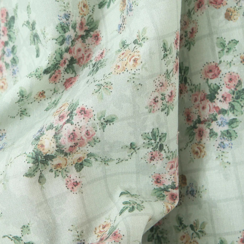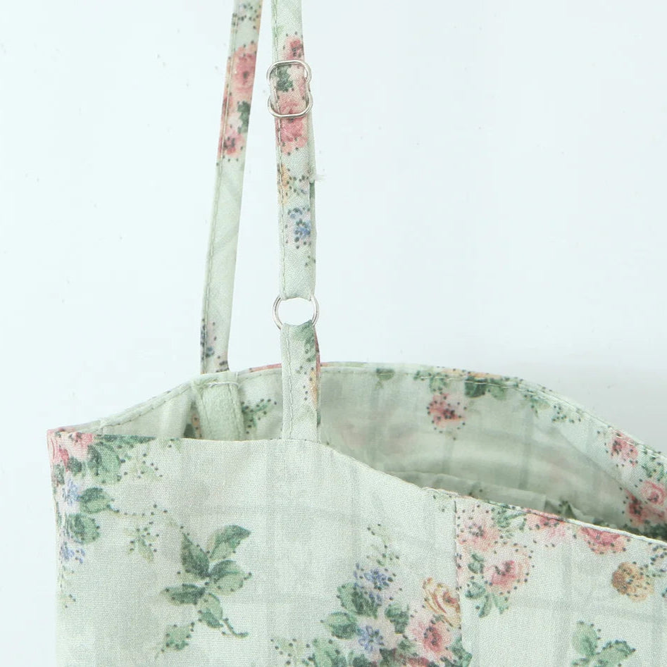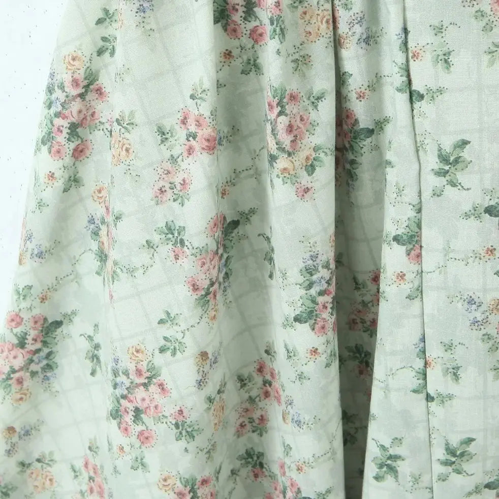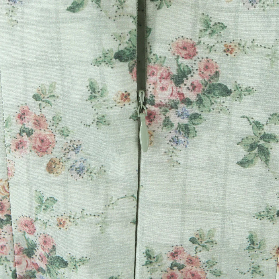 La romantikken blomstre med denne feminine og elegante kjolen i grønt med delikat blomsterprint. Kjolen har en korsett-inspirert overdel med spiler som gir støtte og fremhever figuren, kombinert med tynne stropper for et lett og sommerlig uttrykk. Den lave midjen med rynker og plisserte detaljer gir en flatterende passform, mens det svingende midi-skjørtet skaper en grasiøs silhuett.