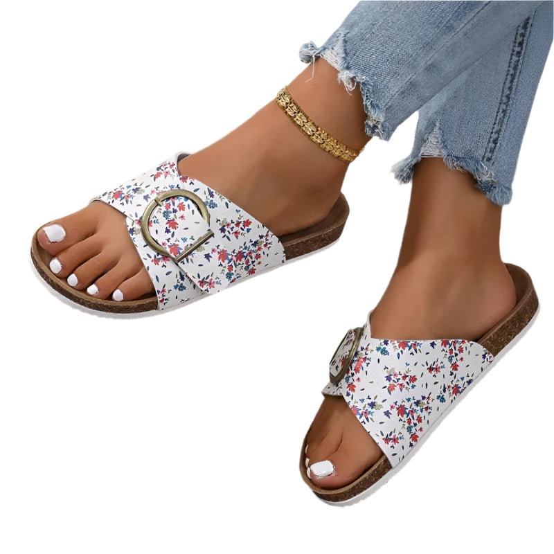 Disse elegante og komfortable flate sandalene er det perfekte valget for varme sommerdager. Med en klassisk rund tå, dekorativ metallspenne og slitesterk, sklihemmende såle, kombinerer de stil med funksjonalitet – enten du skal på ferie, bytur eller bare nyte solen.