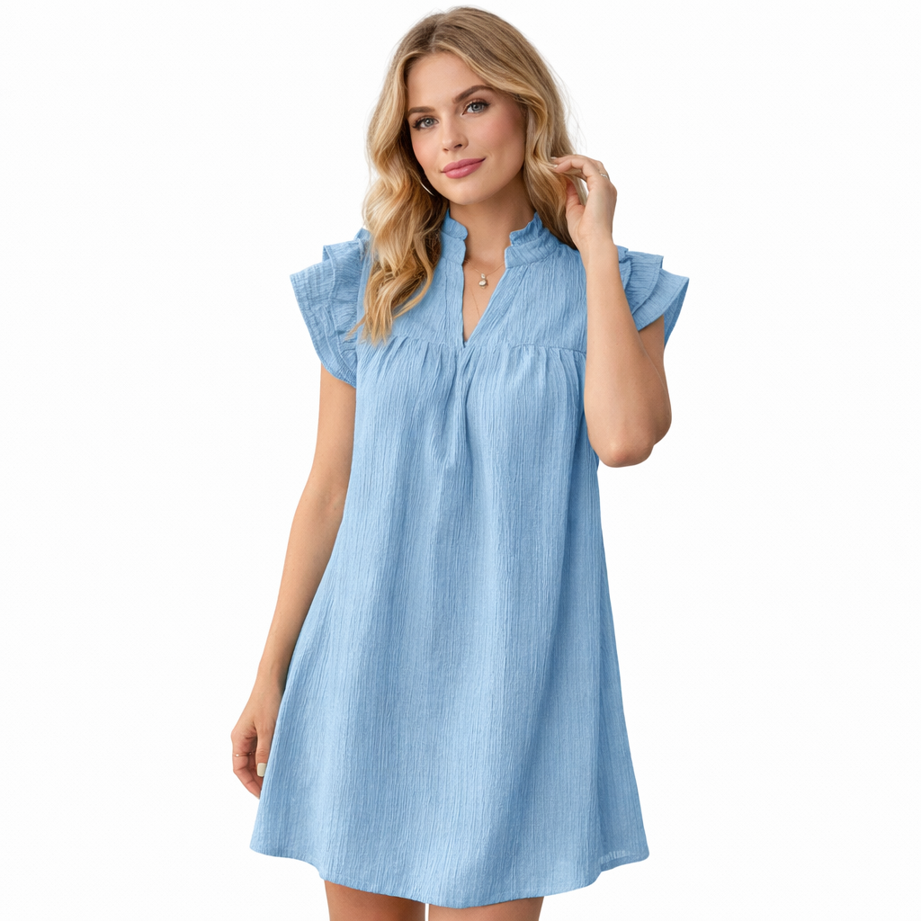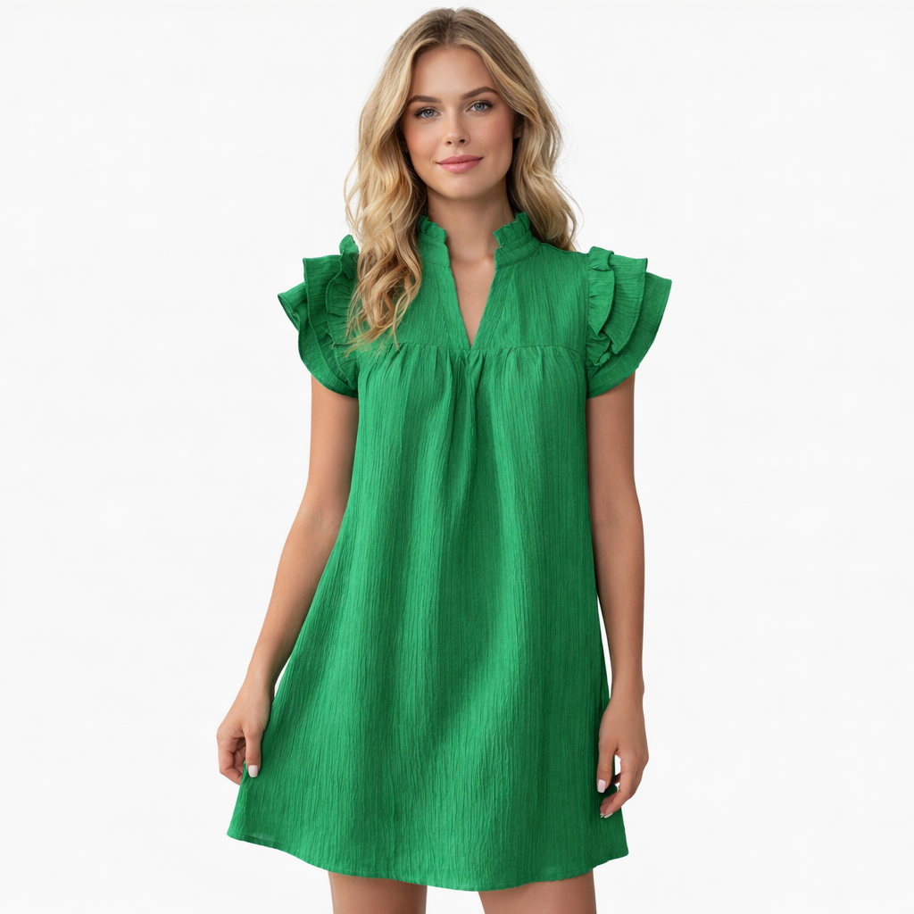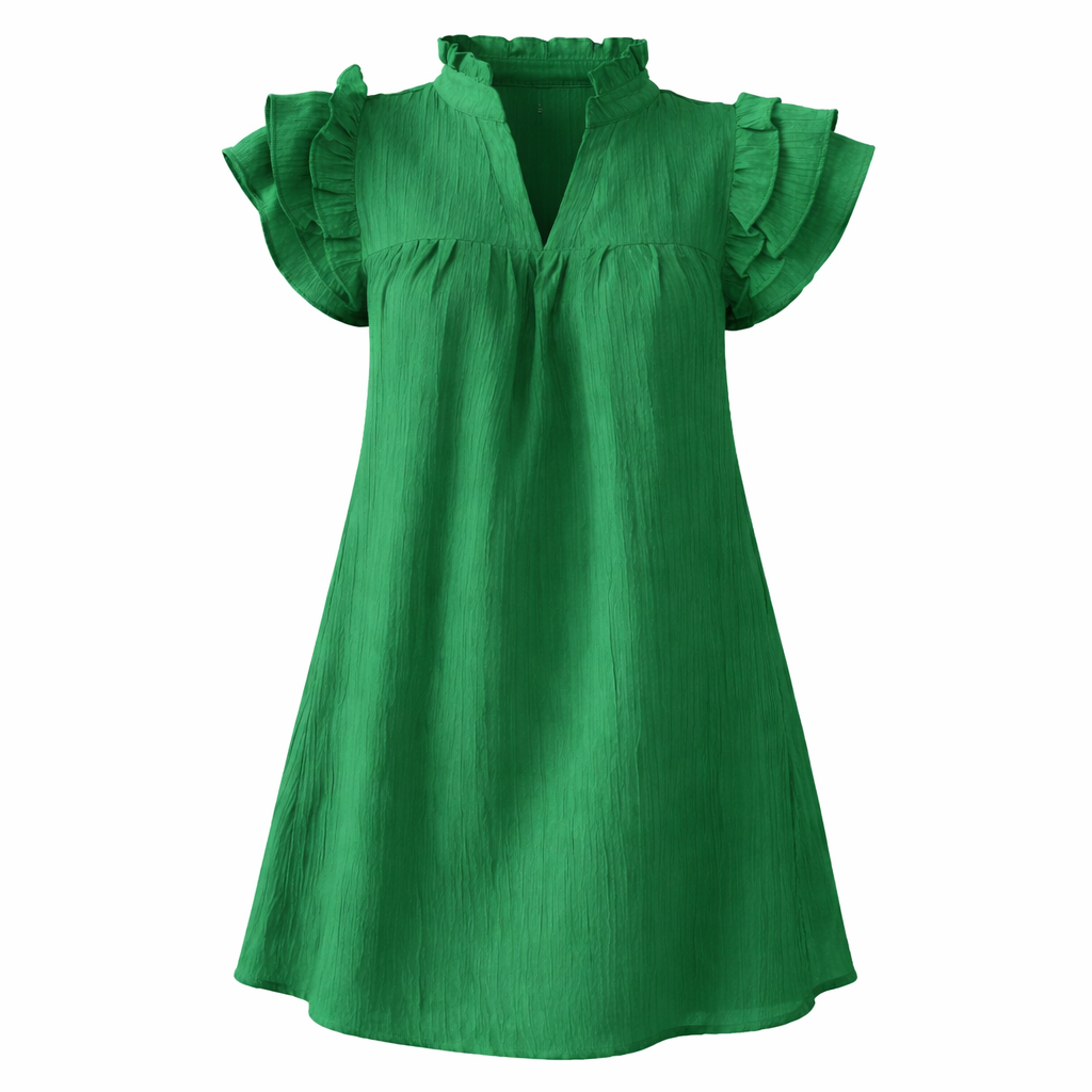 Sommerkjole i Grønn – Kort A-linje med Volang-ermer og V-hals
