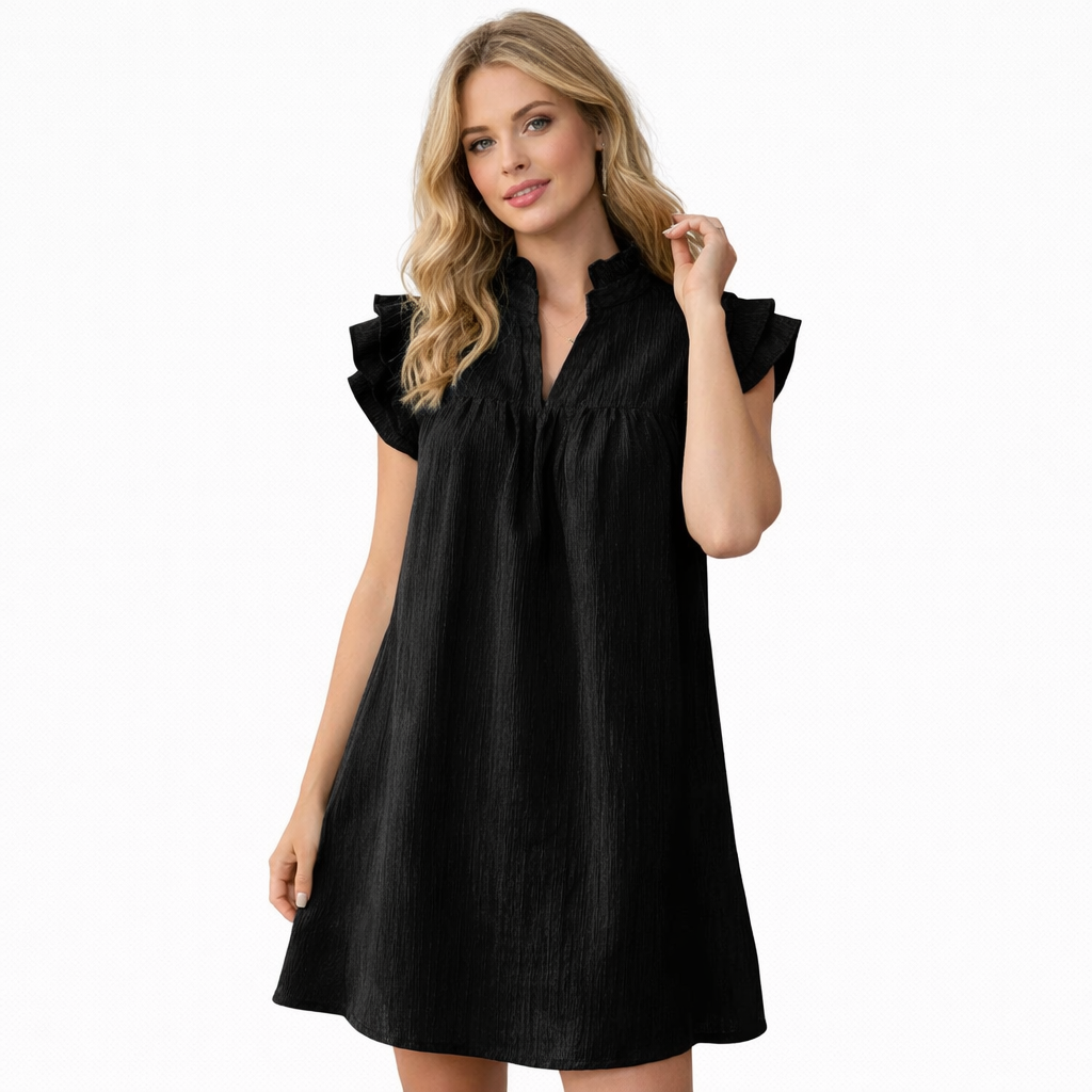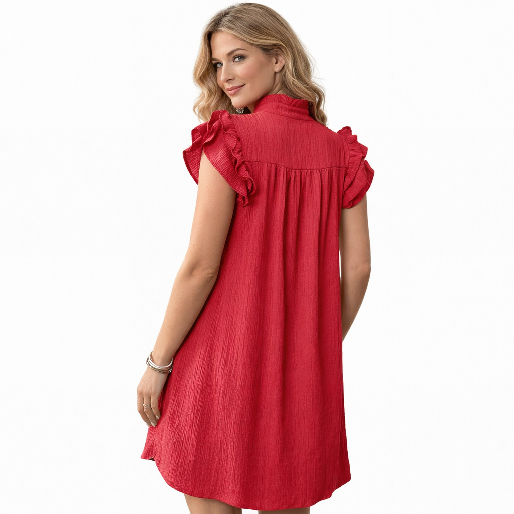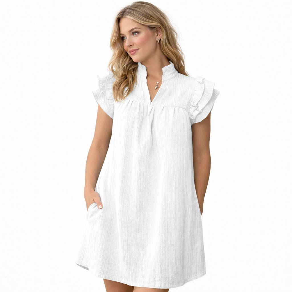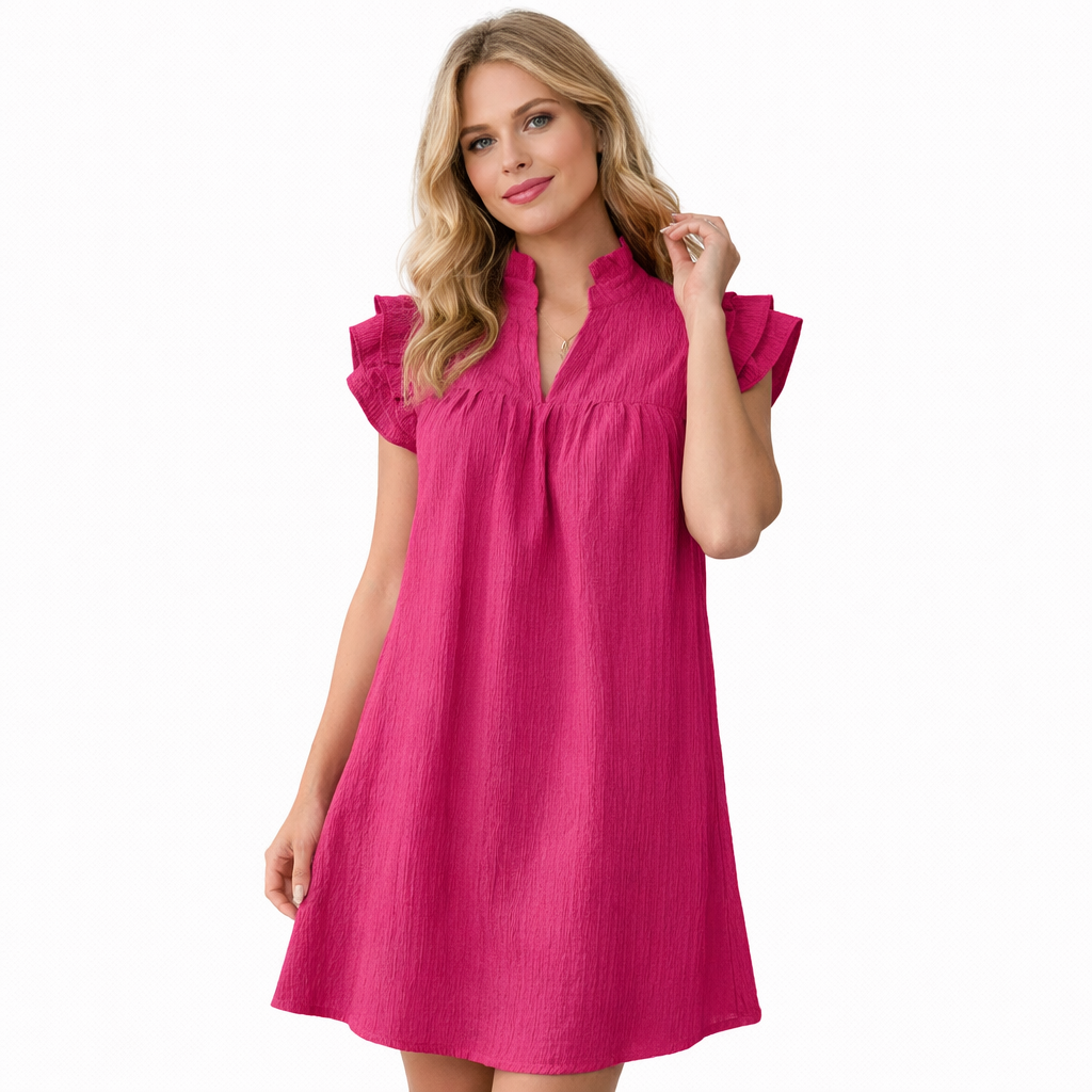Sommerkjole i Grønn – Kort A-linje med Volang-ermer og V-hals
