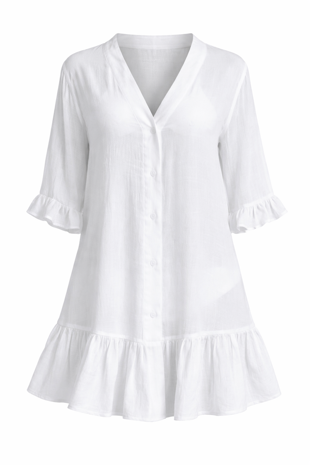 Sommerkjole i Hvit – Oversize A-linje med V-hals og Vide Ermer