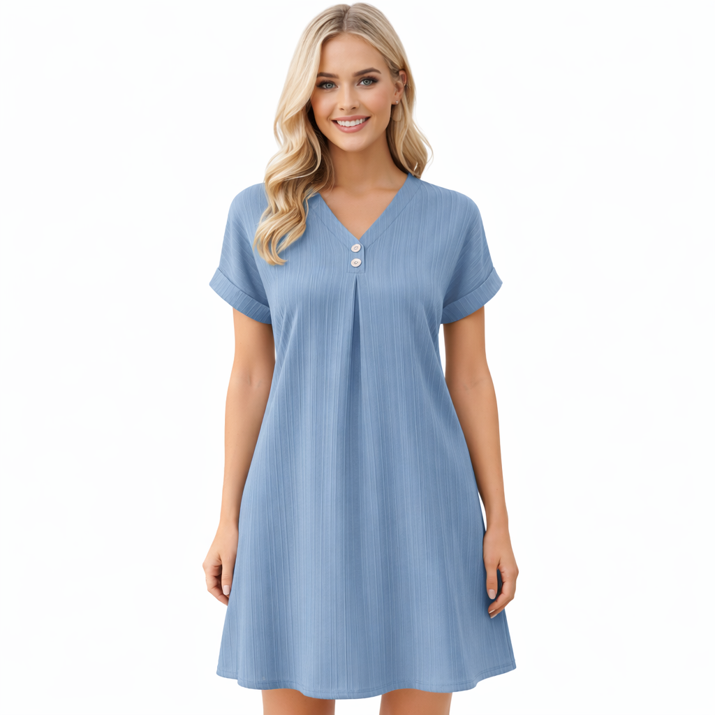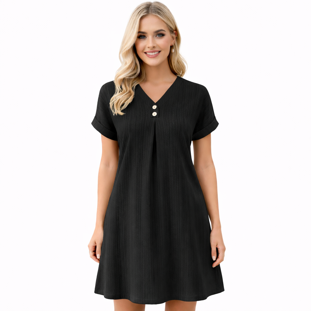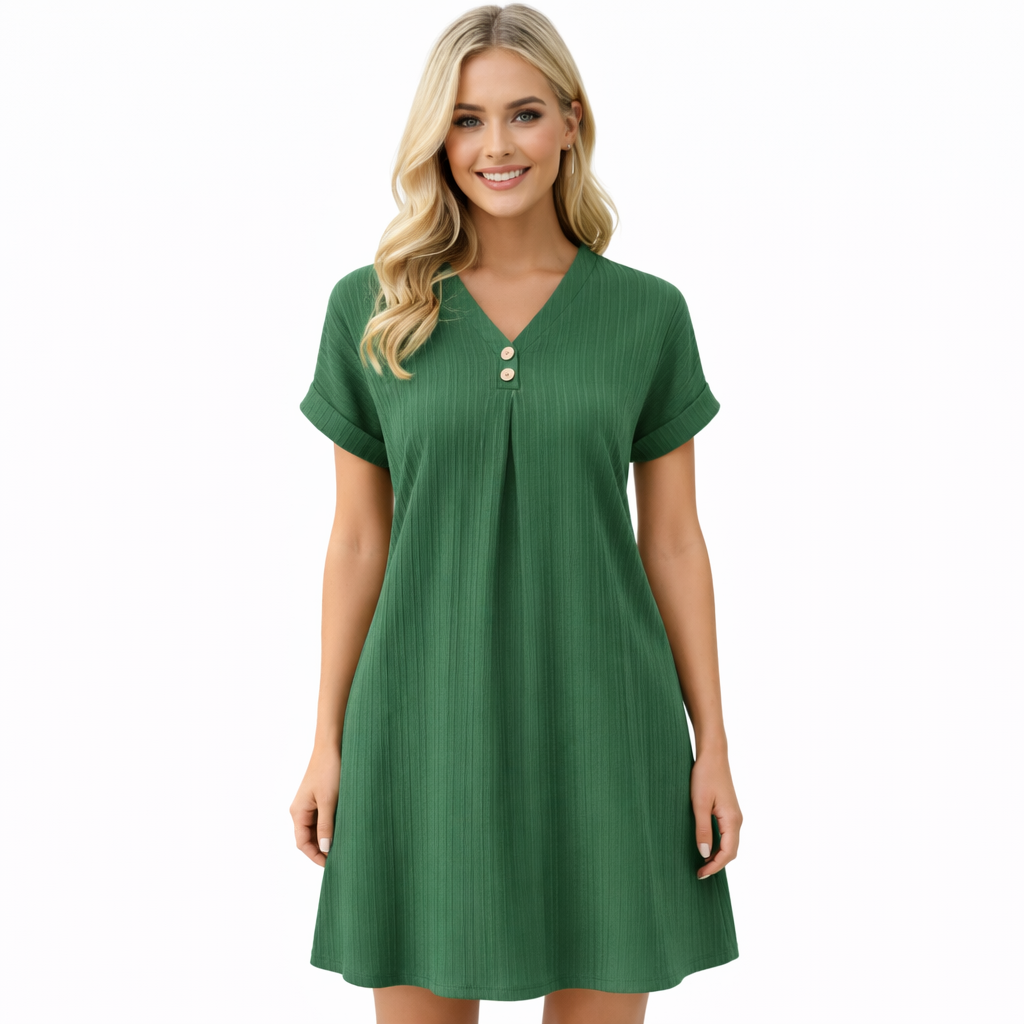 Sommerlig V-hals Kjole for Kvinner – Enkel Minikjole med Knapper til Hverdag og Kontor